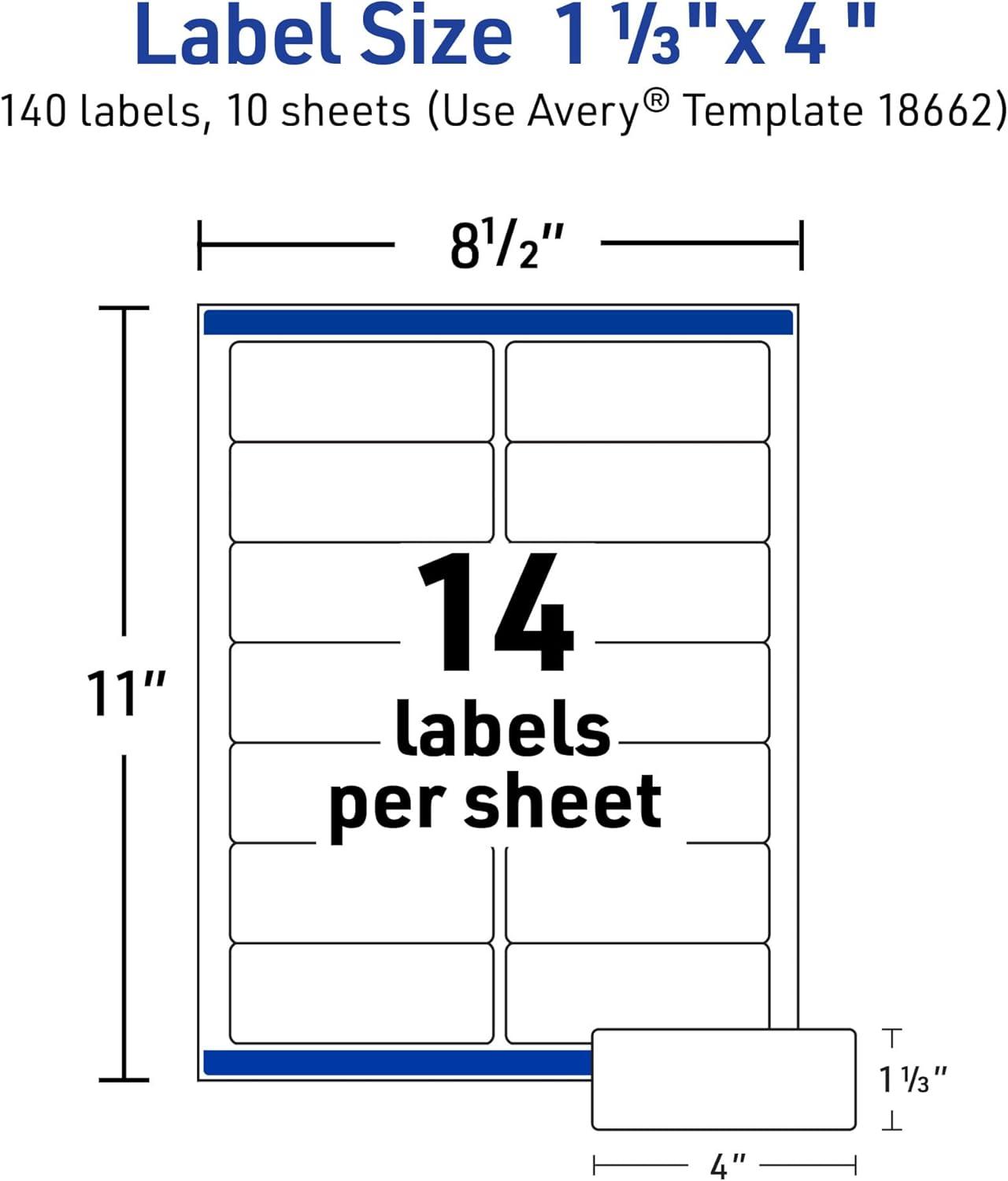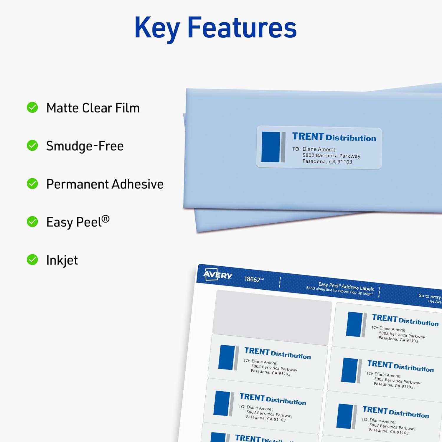 Avery Printable Address Labels, Sure Feed Technology, 1-1/3" x 4", Matte Clear, Permanent Adhesive, Inkjet Printable, 140 Blank Mailing Labels, Great Product Merchandising, Jars, and More (18662)(1-1/3 in. X 4 in.)