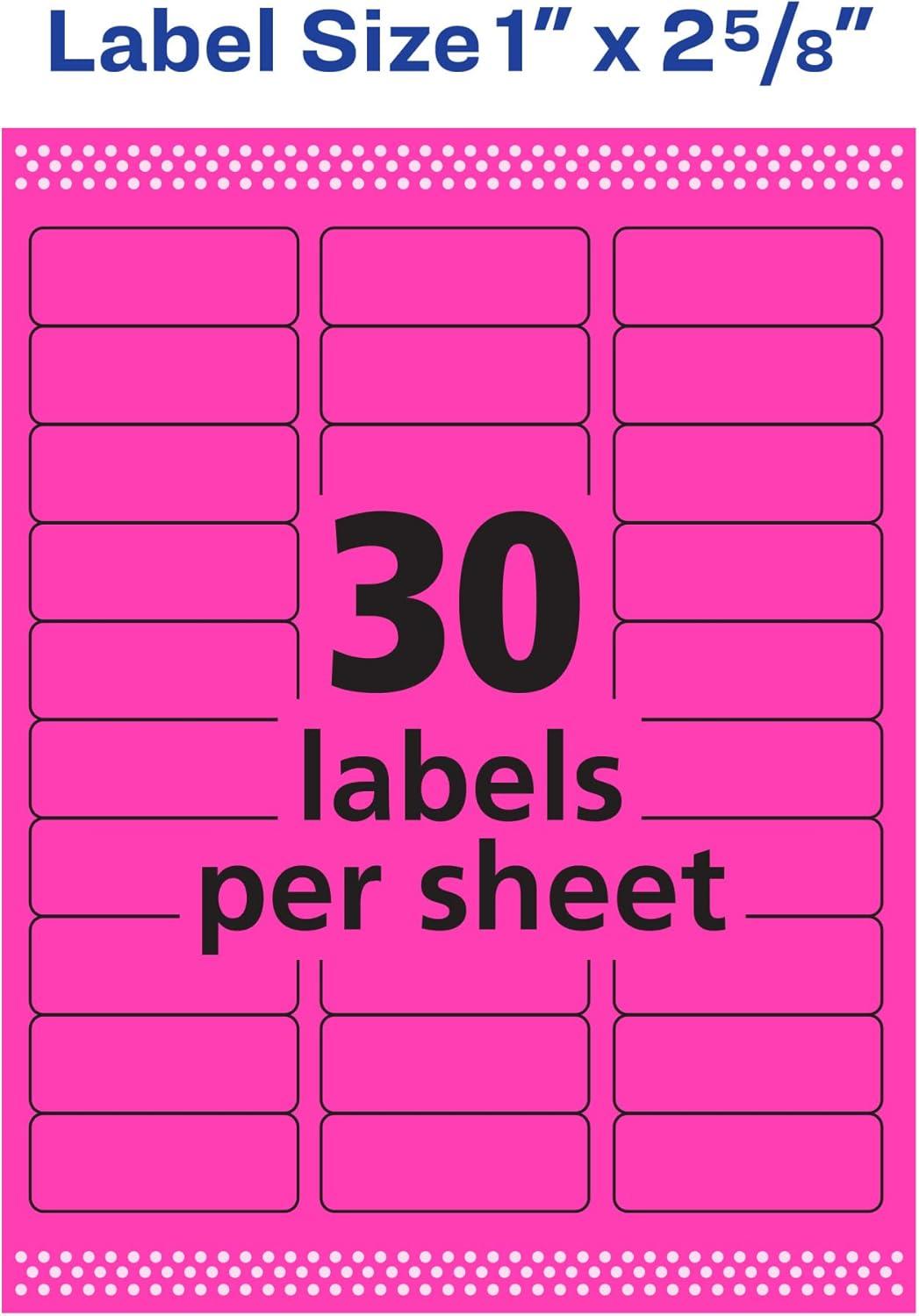 Avery Printable Address Labels with Sure Feed, 1" x 2-5/8", Assorted Neon (Magenta, Green and Yellow), 450 Blank Mailing Labels for Laser and Inkjet Printers (5979)(Neon Magenta)
