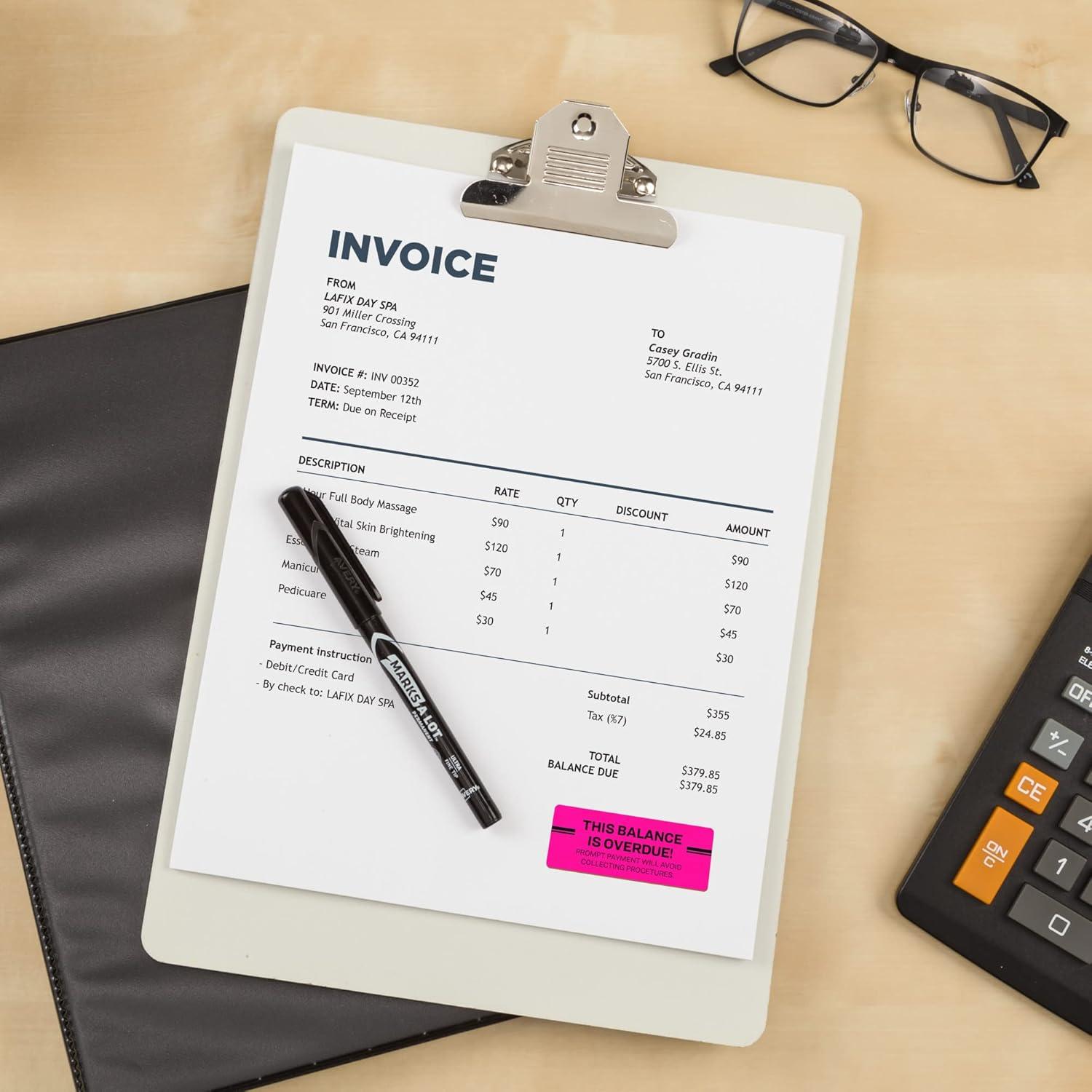 Create eye-catching labels and let your message stand out with Avery Neon Address Labels. Easily design and personalize your unique laser and inkjet address labels with the thousands of free designs, templates, and mail merge tools on the Avery site. For long lasting hold, these strong stick rectangle labels are designed with a permanent adhesive. Printing crisp text and graphics without smudging is made easy with a laser printer or inkjet printer and these ID labels. Ensure a clean printing job and prevent any misalignments or jams using Avery Sure Feed technology. The pack of assorted fluorescent neon stickers include green, pink, and yellow. The color labels are great for ID labels, classroom stickers, mailing labels, invoice labels, or colorful party labels. The pack includes 450 total labels, and each of the label sheets are sized at 8-1/2” x 11”. Each individual label is measured at 1″ x 2 5/8″.