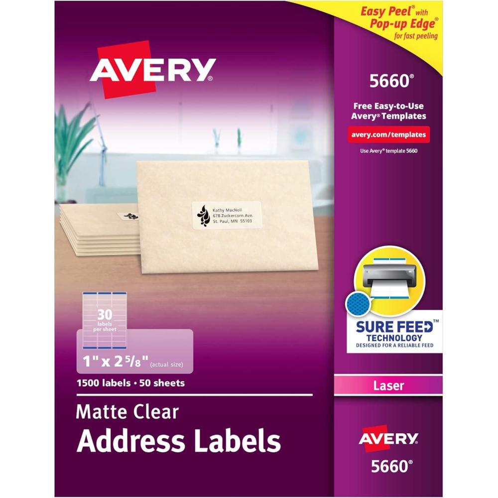 Avery Printable Address Labels with Sure Feed, 1″ x 2-5/8″, Matte Clear, 1,500 Blank Mailing Labels (05660)(1 500 labels)