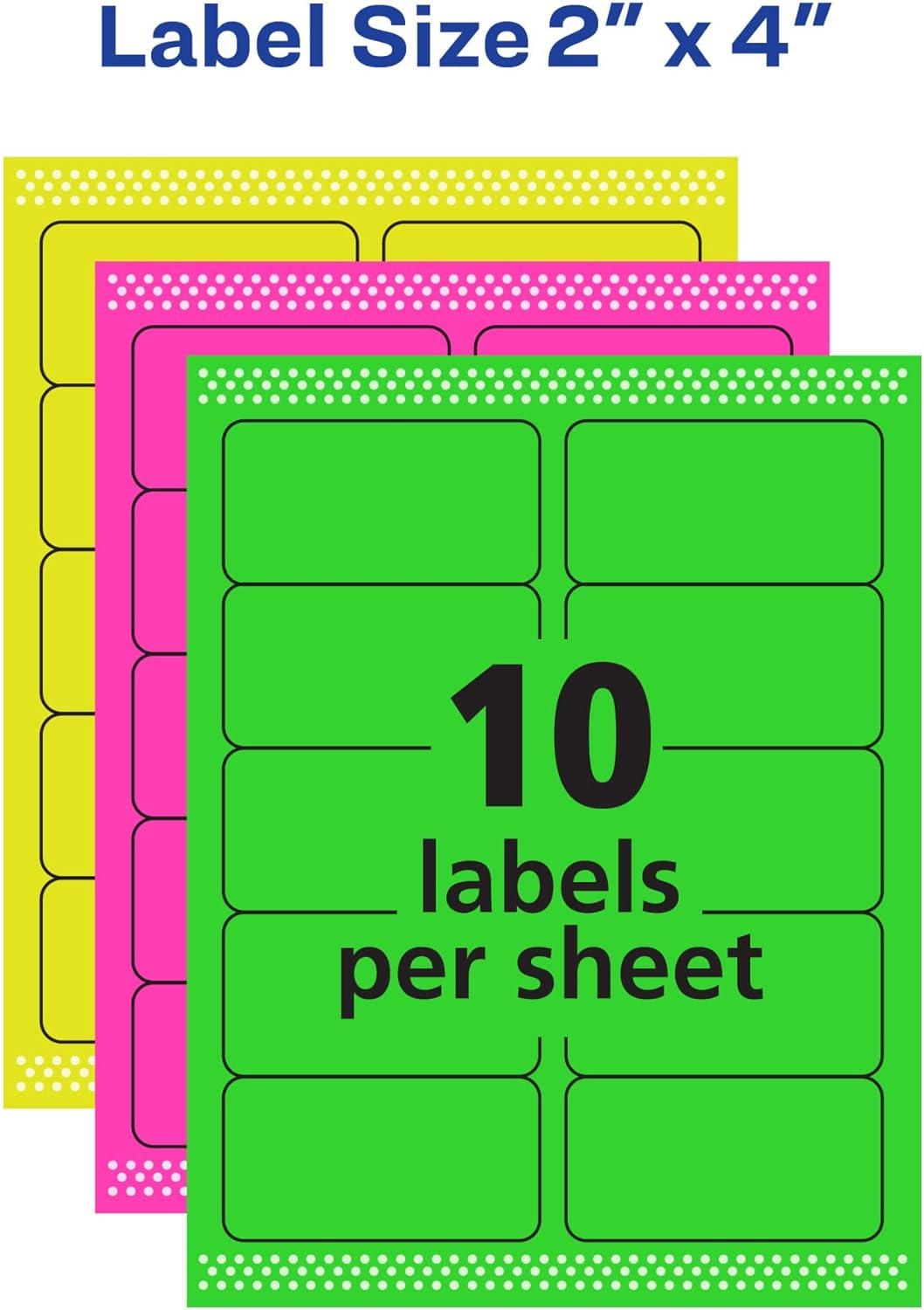 Avery Printable Address Labels with Sure Feed, 2″ x 4″, Assorted Neon (Magenta, Green, Yellow), 150 Blank Mailing Labels (5978)(Assorted)