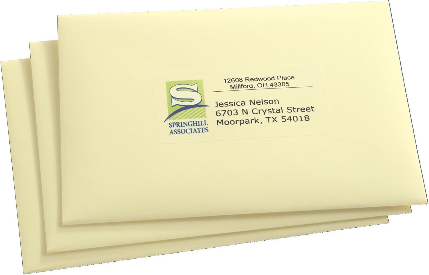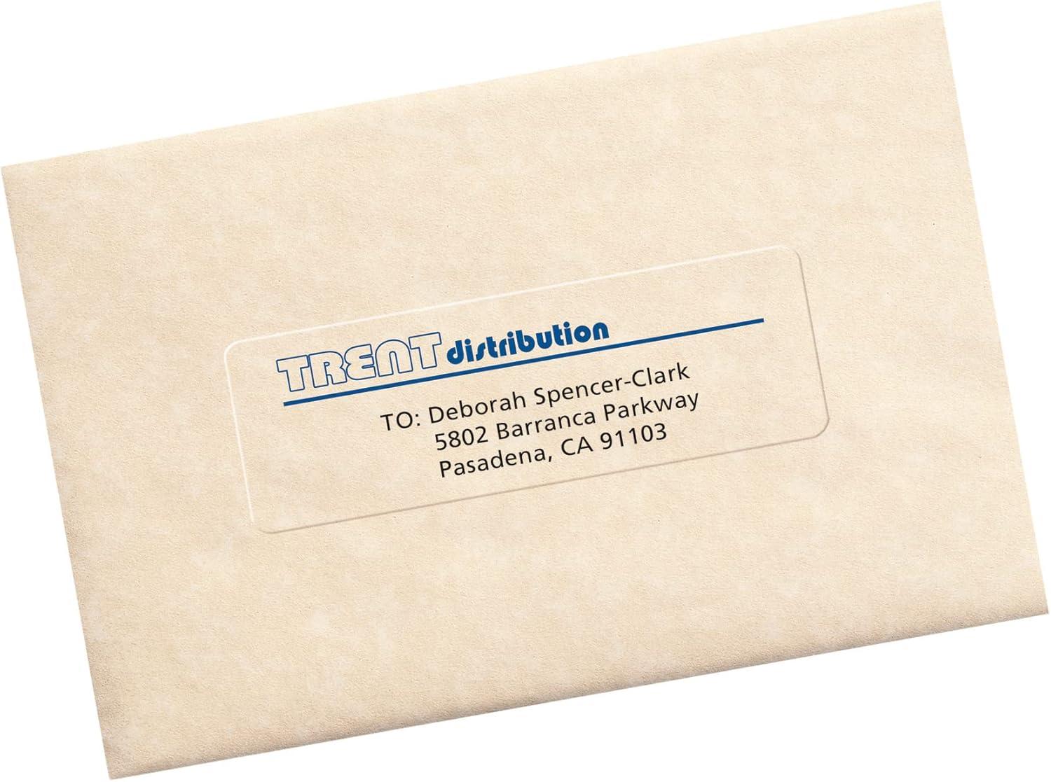 Enjoy a printed-on look with frosted clear address labels that virtually vanish on white and light-colored envelopes, textured paper vellum, glassine white plastic and frosted glass