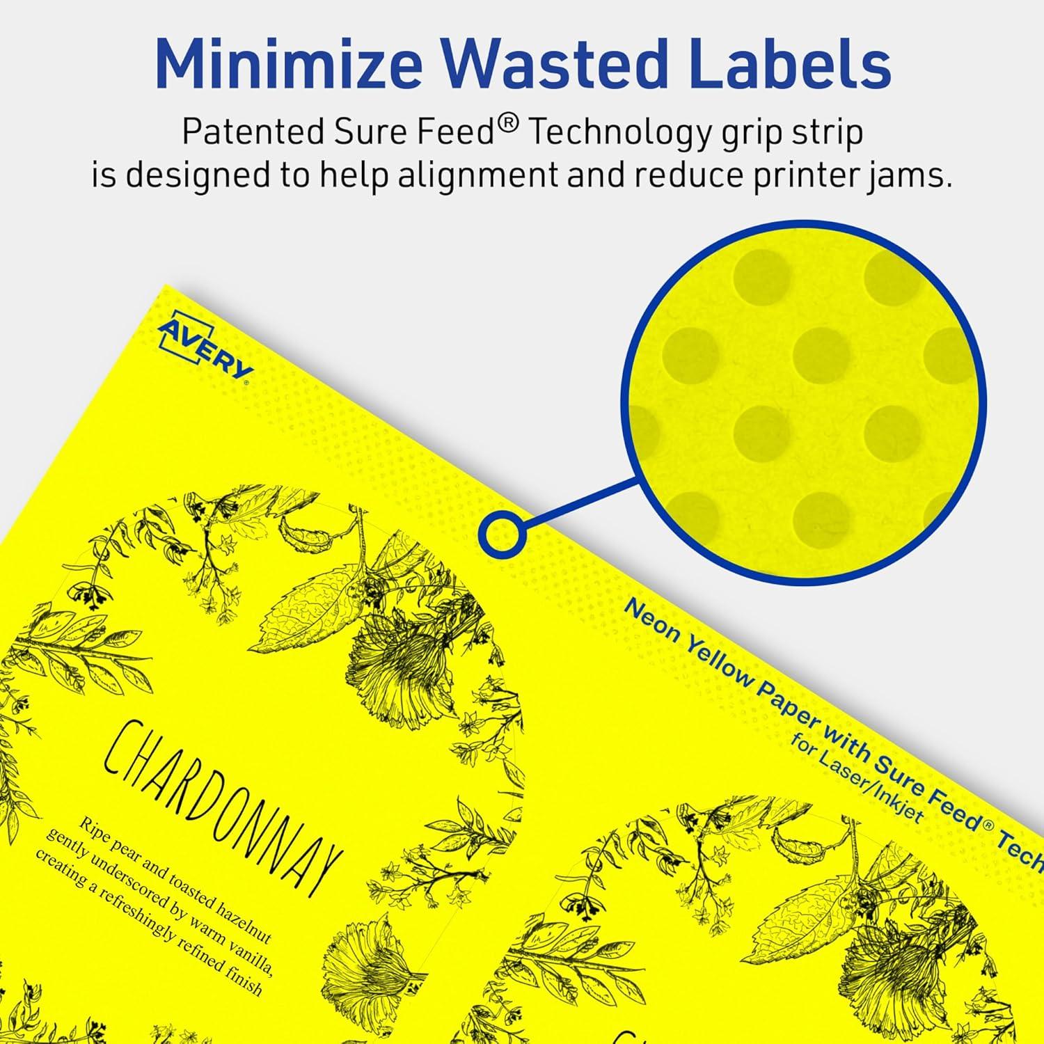 Avery Printable Arched Labels, Sure Feed Technology, 4-3/4″ x 3-1/2″, Neon Yellow Labels, Print-to-The-Edge, Laser/Inkjet Printable, 40 Total, Great for Shipping and Wine Bottles(320 labels)