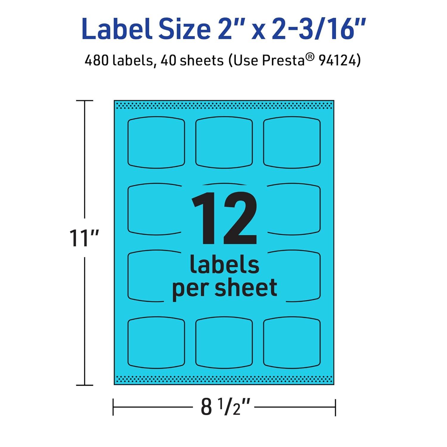 imageAvery Printable Arched Square Labels with Sure Feed Technology 2quot x 2316quot Bright Blue PrinttoTheEdge LaserInkjet 240 Total480 labels