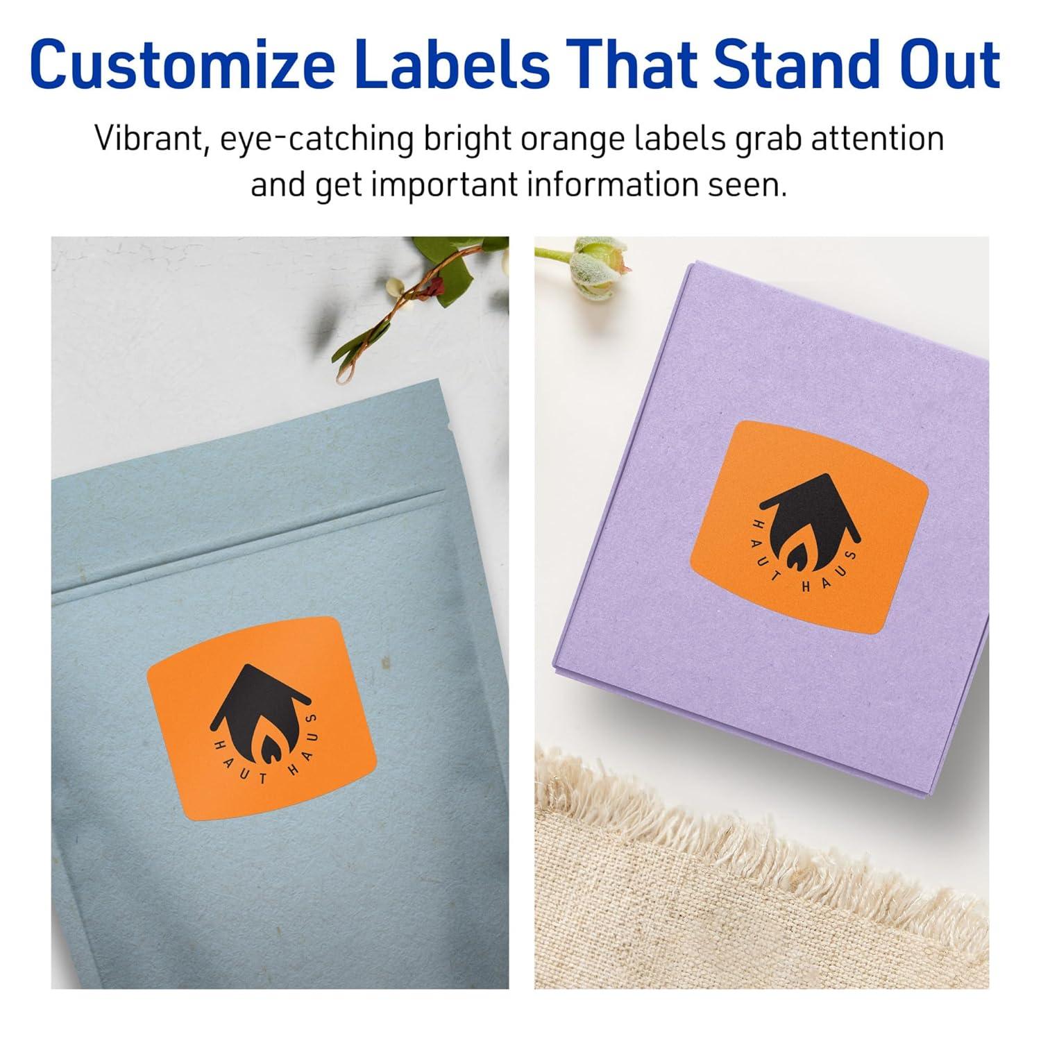 Avery Printable Arched Square Labels with Sure Feed Technology, 2″ x 2-3/16″, Bright Orange, Print-to-The-Edge, Laser/Inkjet, 240 Total(120 labels)
