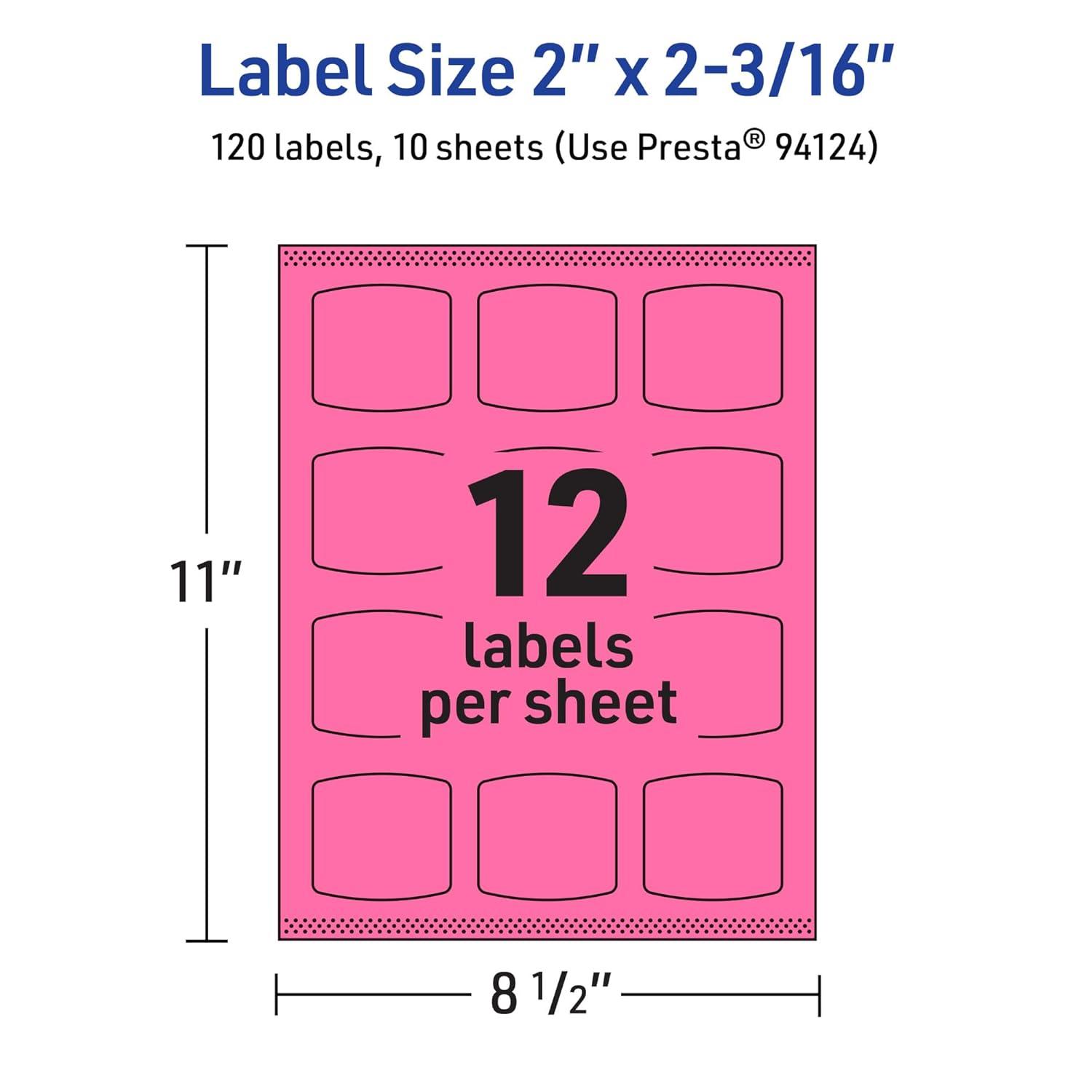 Avery Printable Arched Square Labels with Sure Feed Technology, 2″ x 2-3/16″, Bright Pink, Print-to-The-Edge, Laser/Inkjet, 240 Total(120 labels)