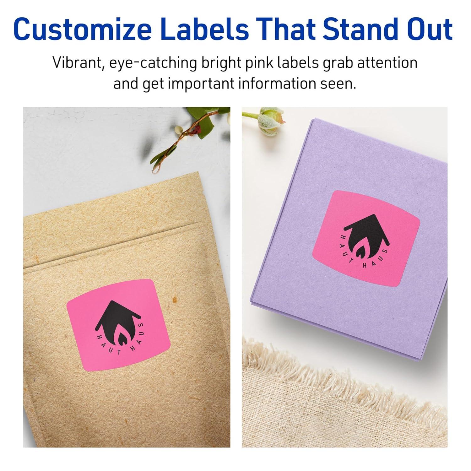 Avery Printable Arched Square Labels with Sure Feed Technology, 2″ x 2-3/16″, Bright Pink, Print-to-The-Edge, Laser/Inkjet, 240 Total(480 labels)