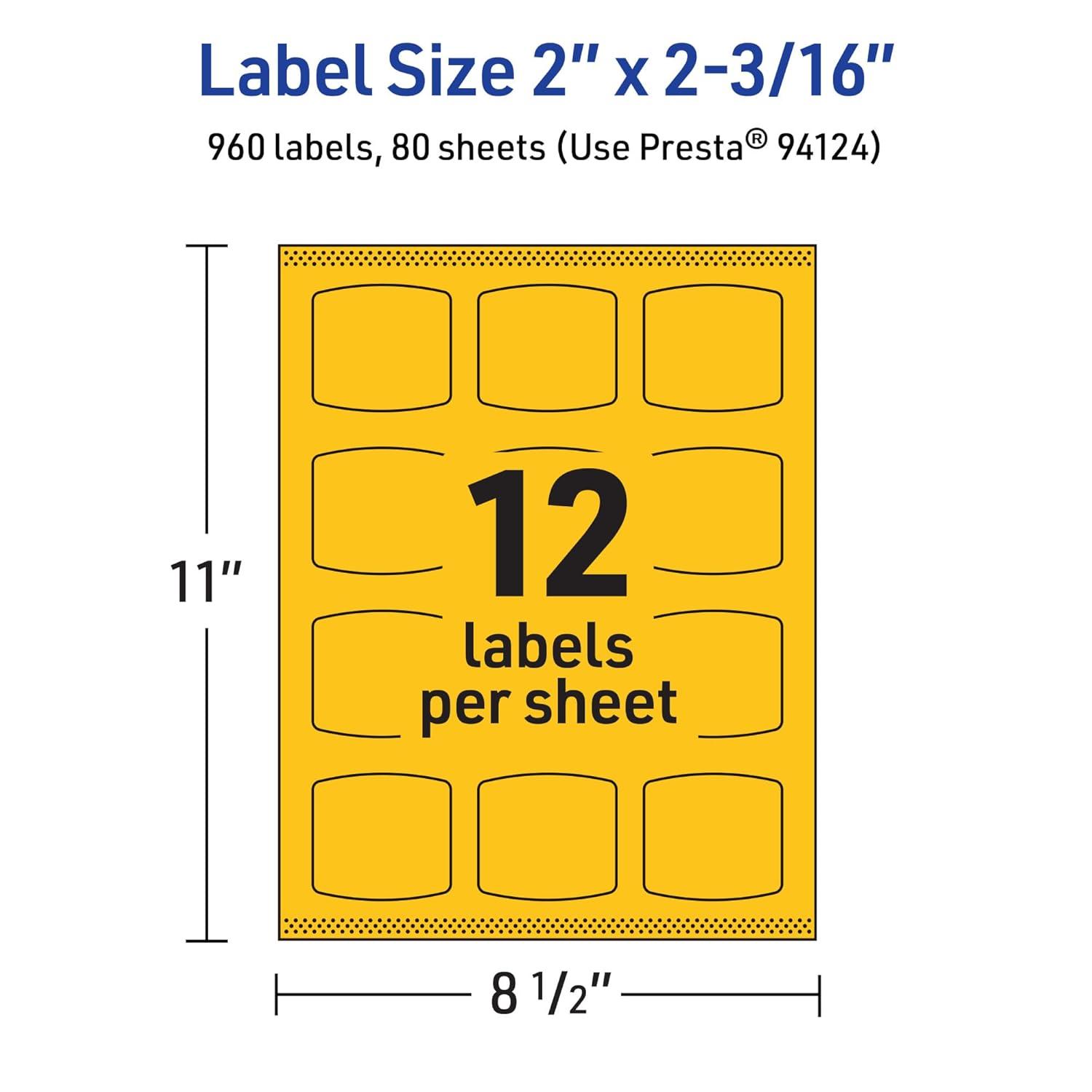 Avery Printable Arched Square Labels with Sure Feed Technology, 2″ x 2-3/16″, Bright Yellow, Print-to-The-Edge, Laser/Inkjet, 240 Total(480 labels)