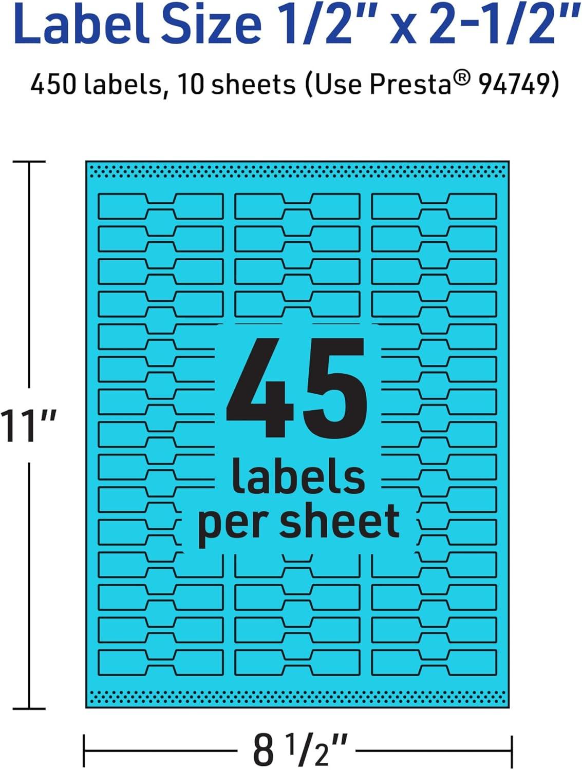 Avery Printable Barbell Labels, Sure Feed Technology, 1/2" x 2-1/2", Bright Blue Labels, Laser/Inkjet Printable, 450 Total, Great for Jewelry and Cords(450 labels)
