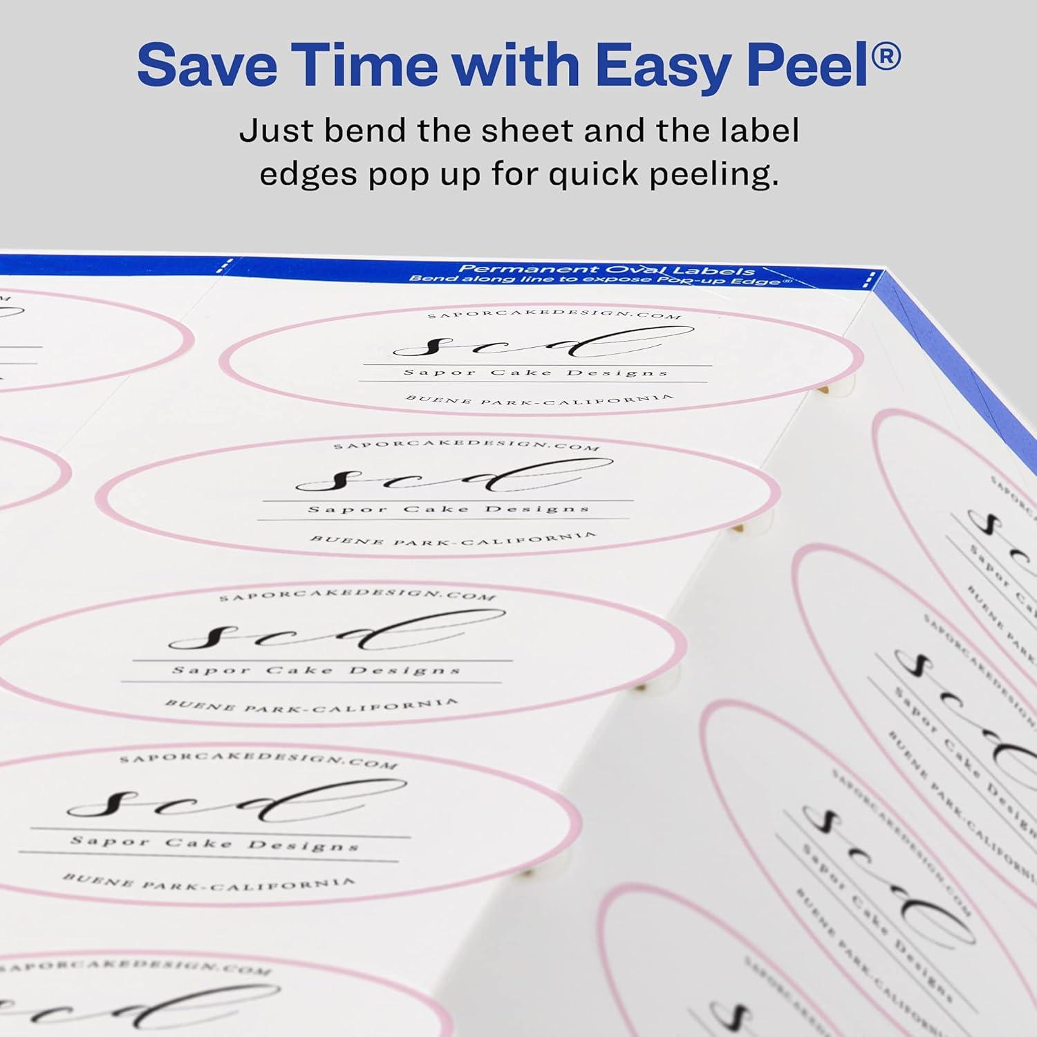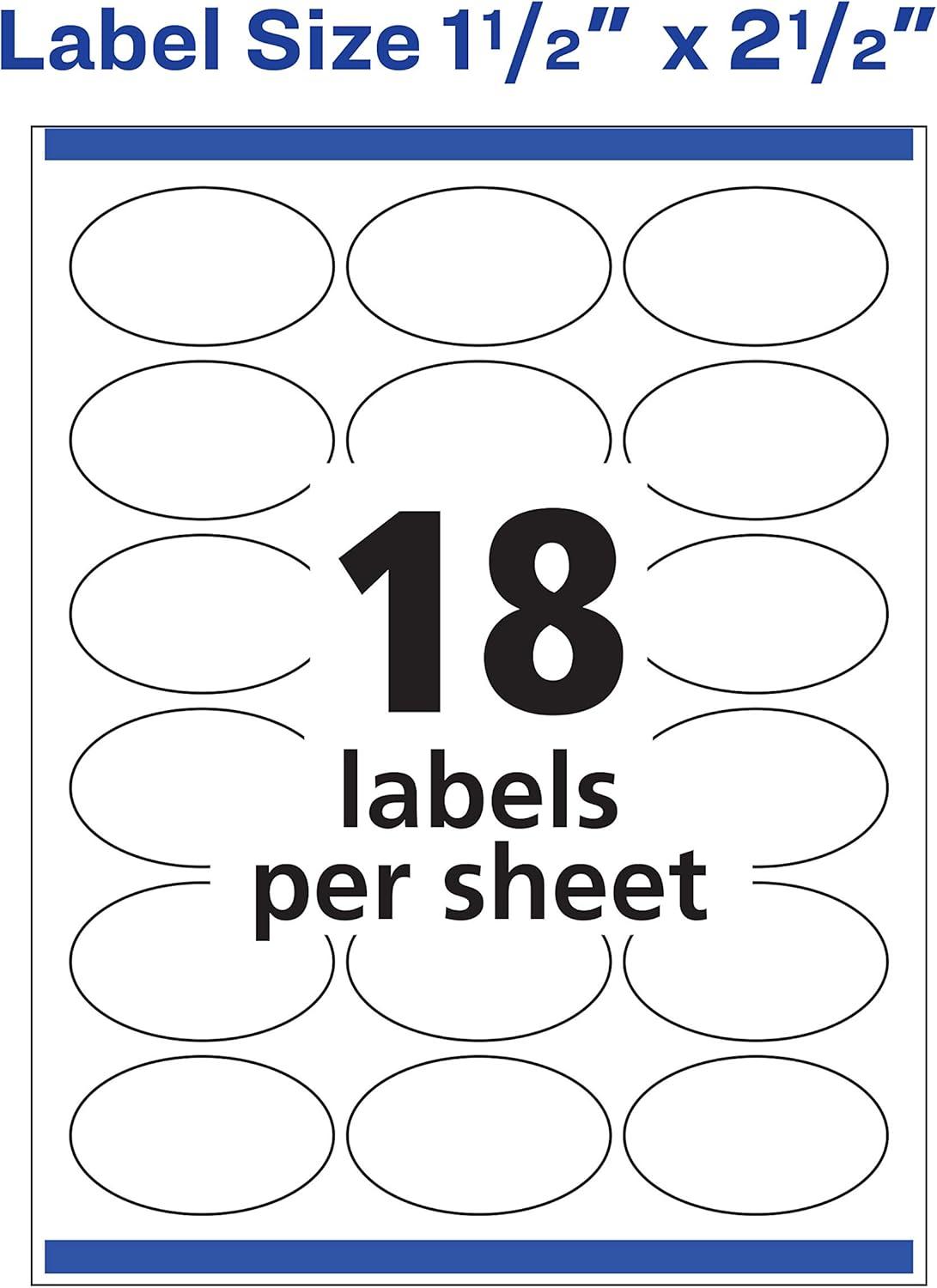 Give projects an eye-catching sheen with these premium, glossy oval labels. The classic white surface of these 1.5” x 2.5” blank printable labels allow your text and colorful graphics to stand out, resulting in a polished and professional finish. Avoid printing misalignments and jams and ensure a clean printing job with our Sure Feed technology. Our Print-to-the-Edge feature allows you to create eye-catching full bleed labels with sharp text and crisp images with no border or margin. Labels are quick and easy to apply with our patented Easy Peel label sheets with Pop-up Edge. Simply fold the sheet back to display the label edges for convenient and fast peeling. Once applied, permanent adhesive ensures the label stickers hold fast to smooth surfaces like paper, cardboard, plastic, glass and painted metals. Effortlessly create customized sticker labels with your own text, art and photos, or use the free templates from Avery Design & Print to design branding labels, canning jar labels, gift label stickers, packaging labels and more. Try it out today on the Avery site. This item comes with 18 labels per sheet and includes 10 sheets for a total of 180 blank white labels.