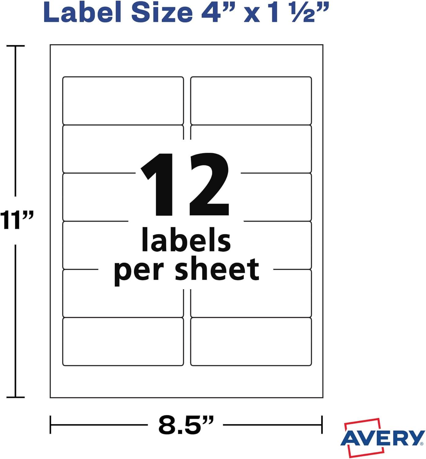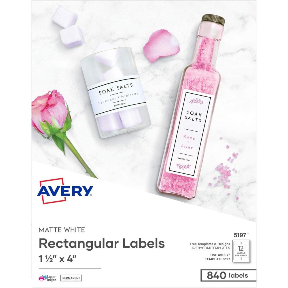 Avery Printable Blank Rectangle Labels, 1.5″ x 4″, Matte White, 840 Customizable Labels (5197)(One Size)
