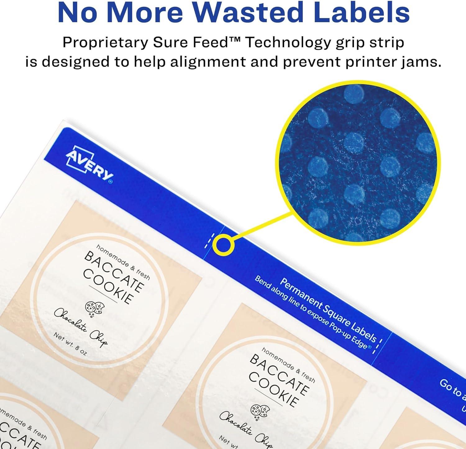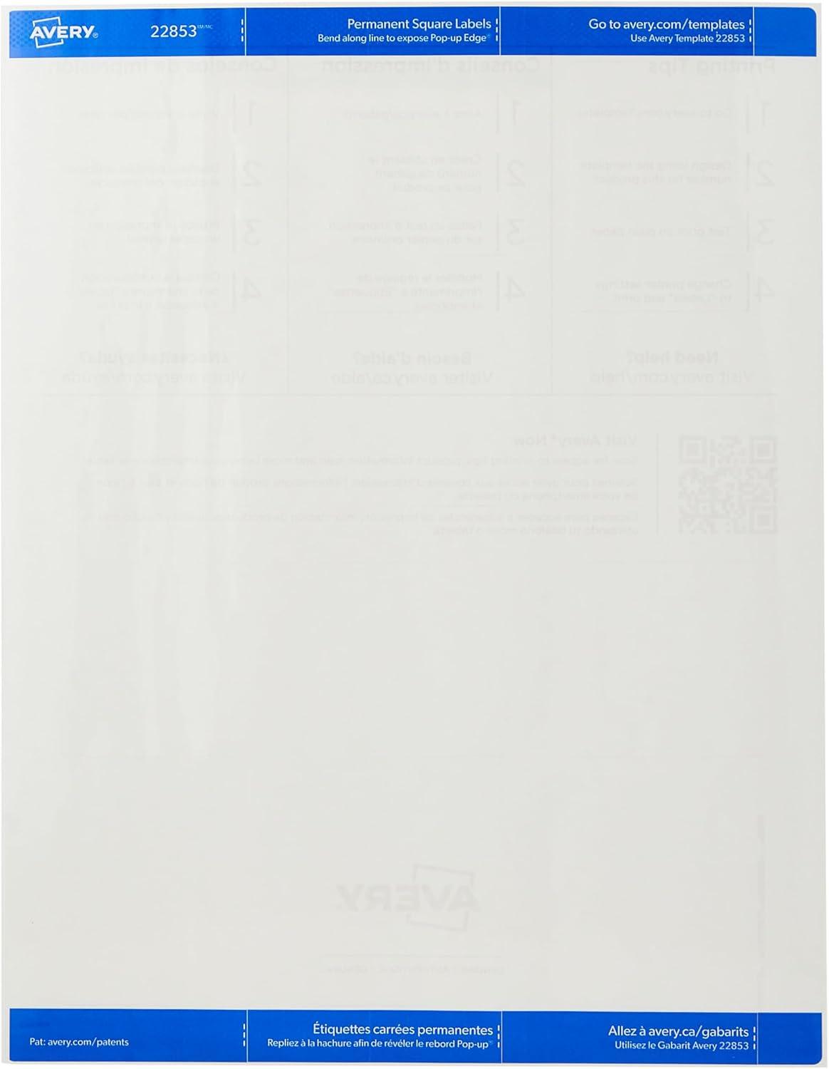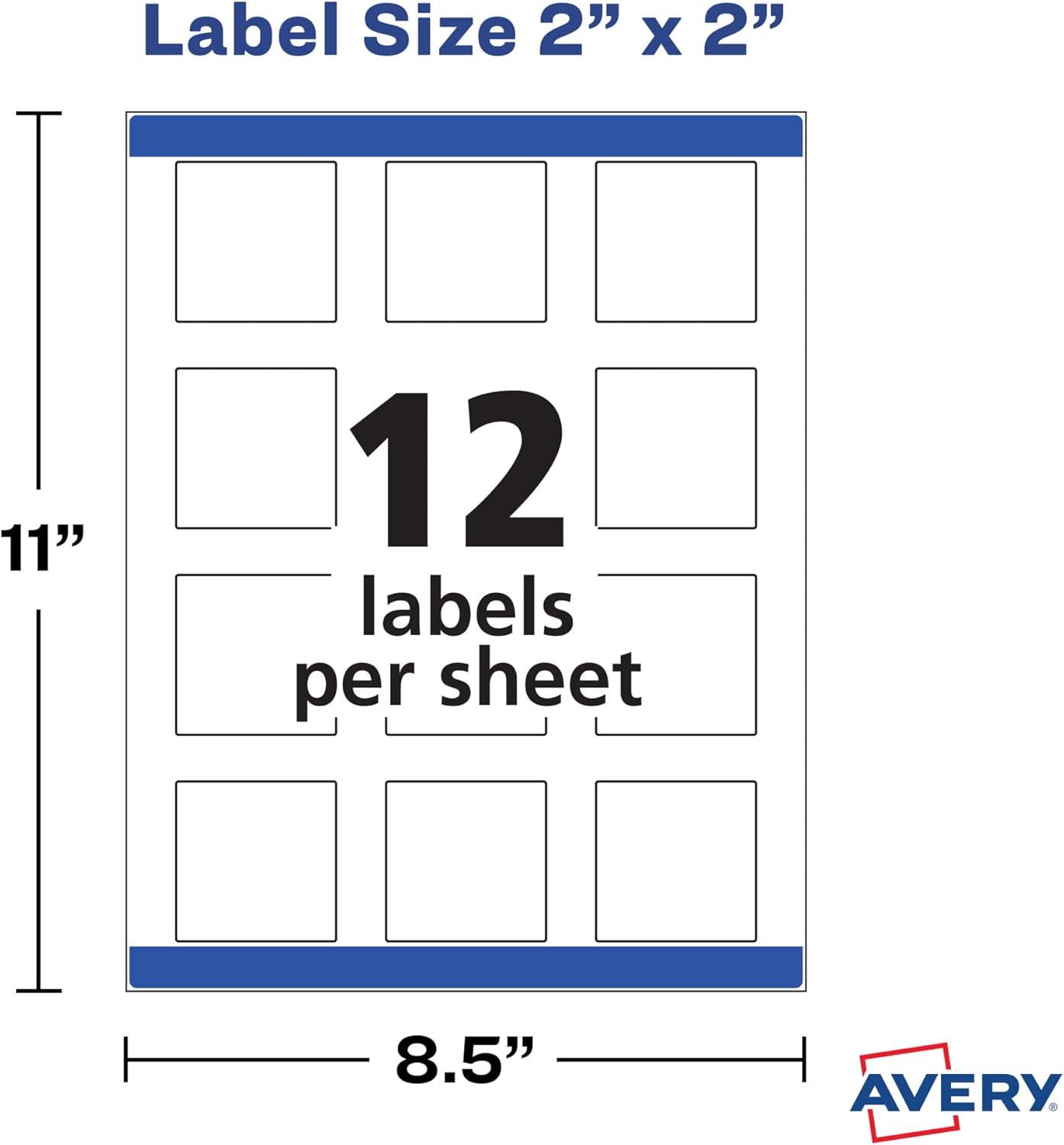 Give your product or handmade gift a custom printed on look with crystal clear small square labels. These 2” x 2” glossy clear labels look best when applied to white or light colored surfaces. Create eye-catching full bleed labels with sharp text and crisp images printed right to the edge with no border or margin. Avoid printing misalignments and jams and ensure a clean printing job with our Sure Feed technology. Labels are quick and easy to apply with our patented Easy Peel label sheets with Pop-up Edge. Simply fold the sheet back to display the label edges for convenient and fast peeling. Once applied, the permanent adhesive ensures the label stickers hold fast to smooth surfaces like paper, cardboard, plastic, glass and painted metals. Effortlessly create customized sticker labels with your own text, art and photos, or use the free templates from Avery Design & Print to design candle labels, glass jar labels, product labels, gift label stickers and more. Try it out today on the Avery site. This item comes with 12 labels per sheet and includes 10 sheets for a total of 120 blank clear labels.