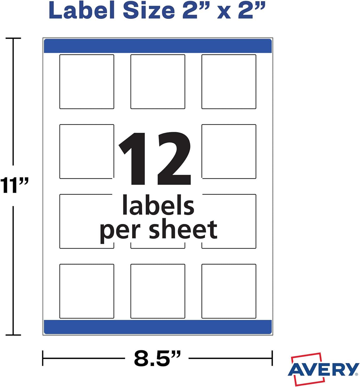 Avery Printable Blank Square Labels, 2″ x 2″, Matte White, 300 Customizable Labels (22806)(Matte White)