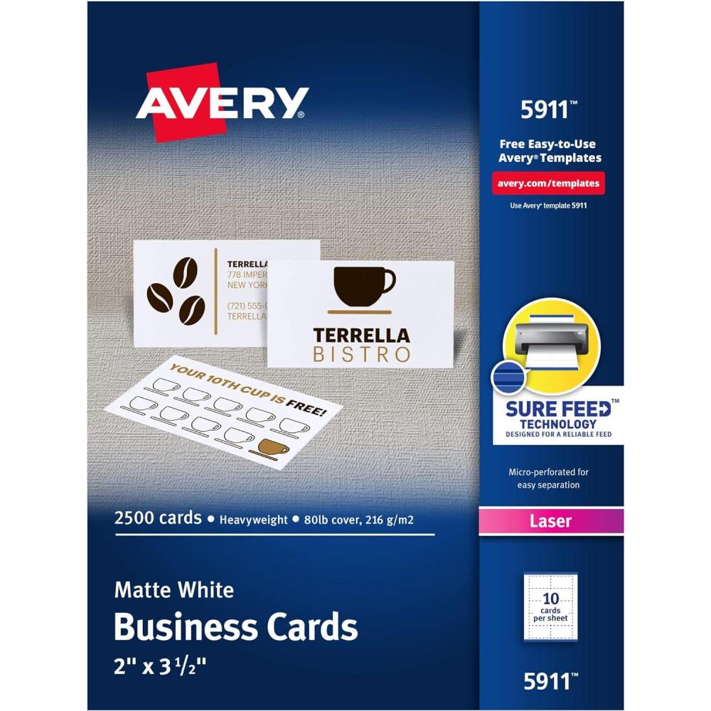 Avery Printable Business Cards with Sure Feed Technology, 2" x 3.5", White, 250 Blank Cards for Laser Printers (05371)(0)