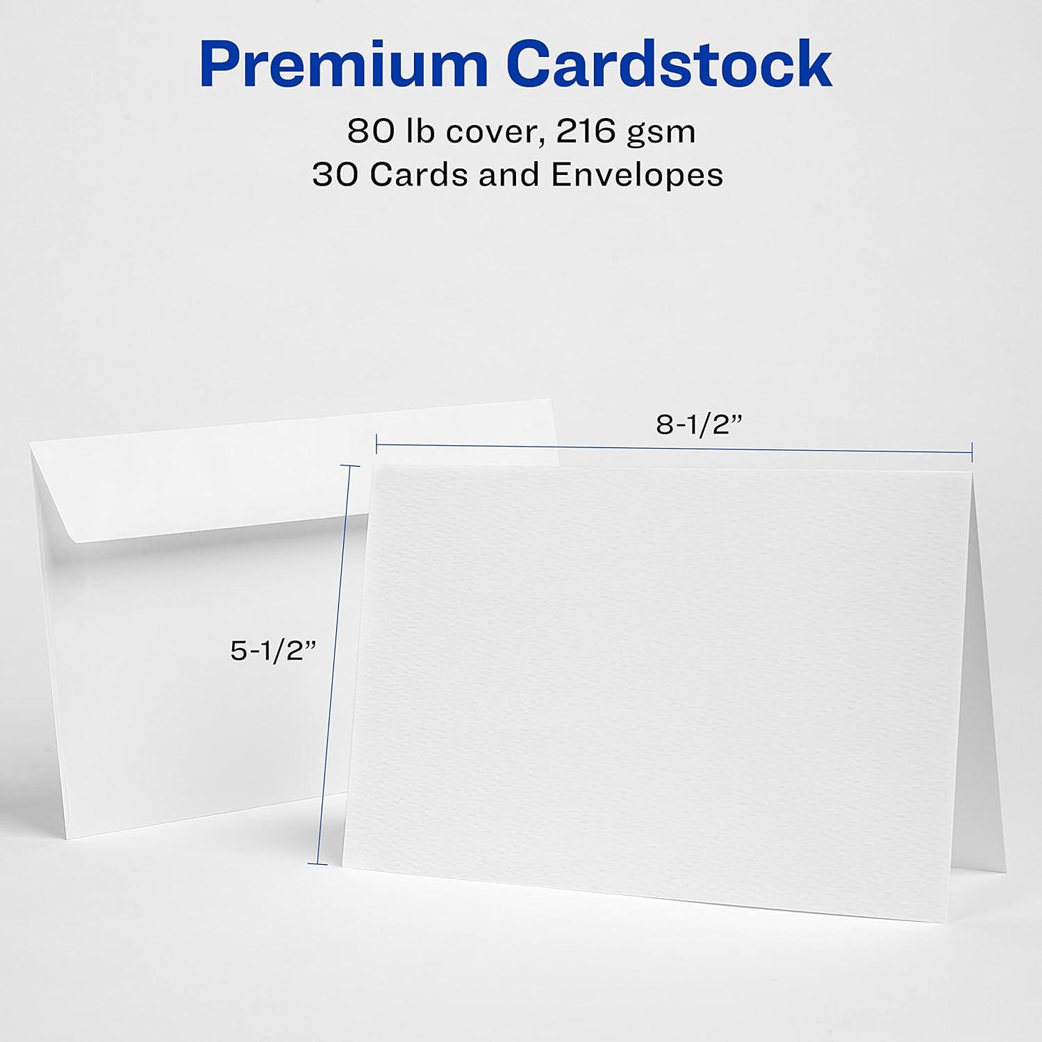 Avery Printable Greeting Cards with Envelopes, Half-Fold, 5.5" x 8.5", Matte White, 30 Blank Greeting Cards for Inkjet Printers (08316)(30 cards)