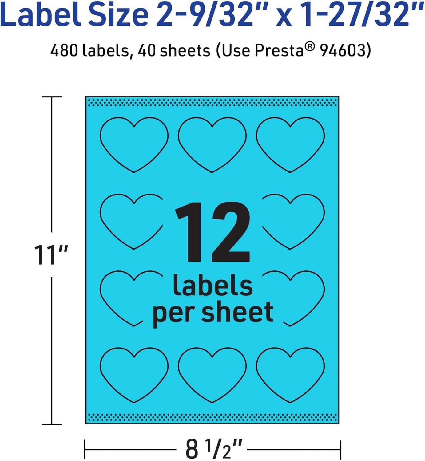 Avery Printable Heart Labels, Sure Feed Technology, 2-9/32″ x 1-27/32″, Bright Blue Labels, Print-to-The-Edge, Laser/Inkjet Printable, 120 Total, Great for Mailing Seals and Packaging(480 labels)