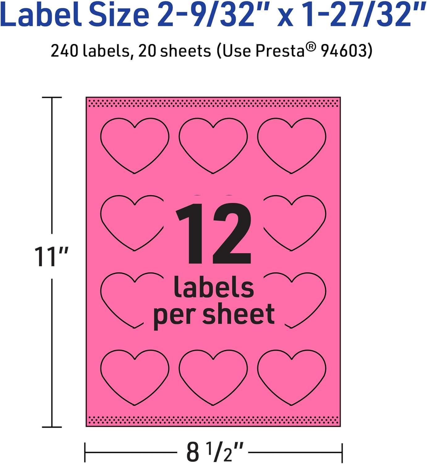 Avery Printable Heart Labels, Sure Feed Technology, 2-9/32″ x 1-27/32″, Bright Pink Labels, Print-to-The-Edge, Laser/Inkjet Printable, 120 Total, Great for Mailing Seals and Packaging(240 labels)