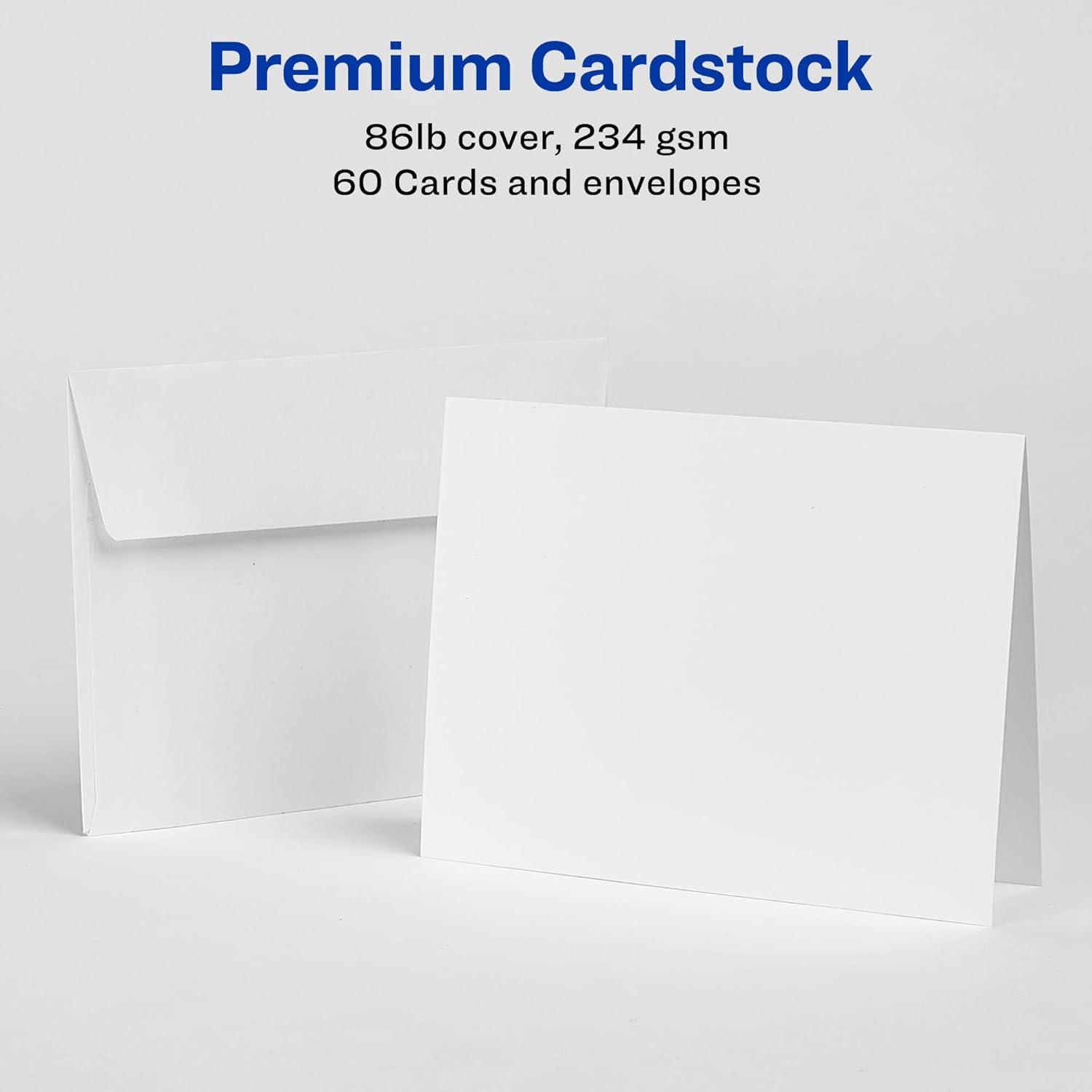 Avery Printable Note Cards with Envelopes, 4.25" x 5.5", Matte White, 60 Blank Note Cards for Inkjet Printers (08315)(60 Count (Pack of 5))
