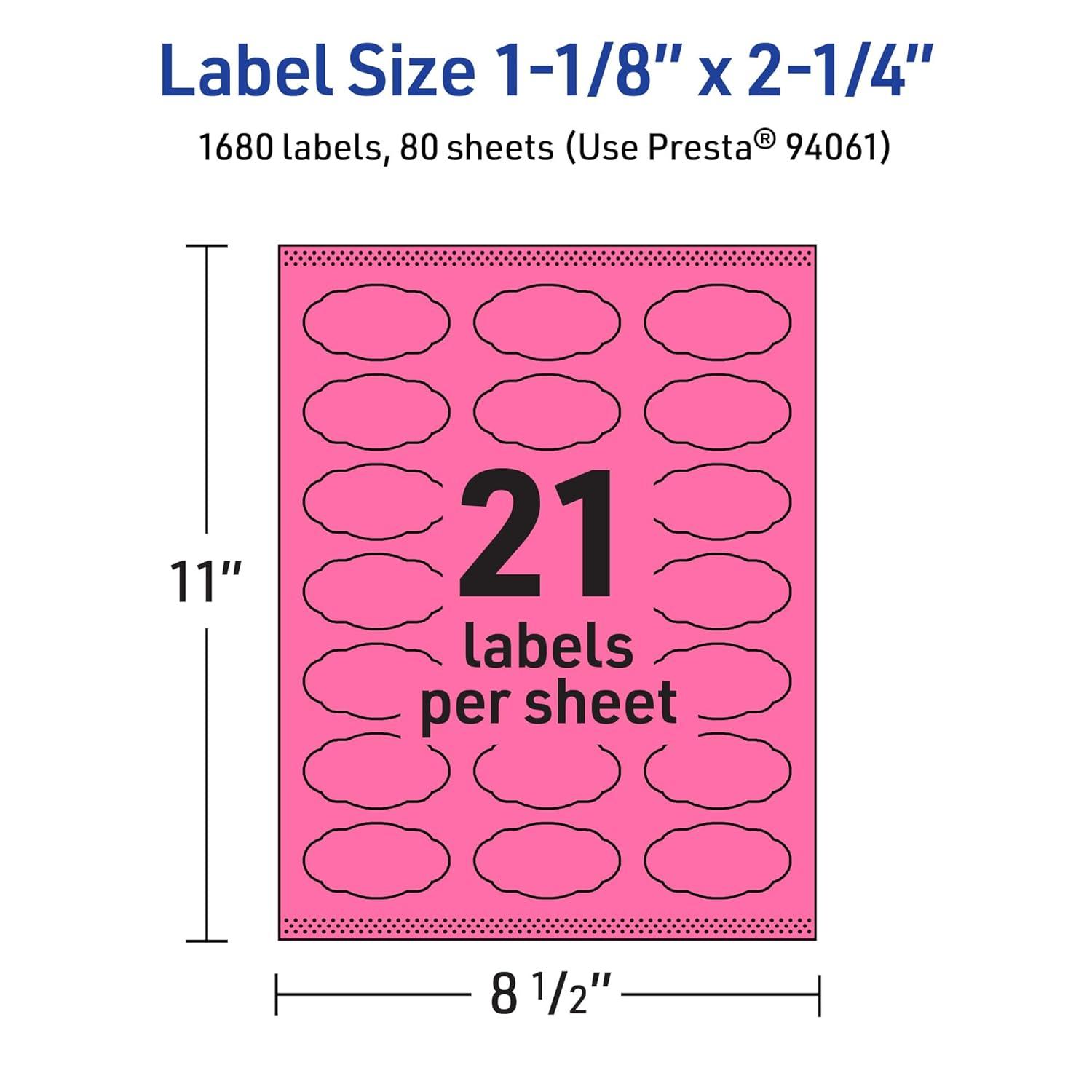 Avery Printable Oval Scalloped Labels, Sure Feed Technology, 1-1/8" x 2-1/4", Bright Pink Labels, Print-to-The-Edge, Laser/Inkjet Printable, 210 Total, Great for Candles and Jars(1 680 labels)