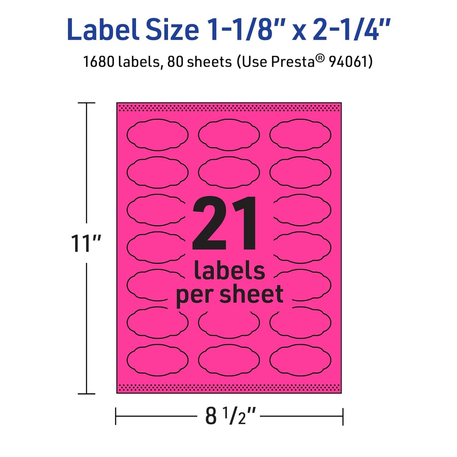 Avery Printable Oval Scalloped Labels, Sure Feed Technology, 1-1/8″ x 2-1/4″, Neon Magenta Labels, Print-to-The-Edge, Laser/Inkjet Printable, 420 Total, Great for Candles and Jars(1 680 labels)