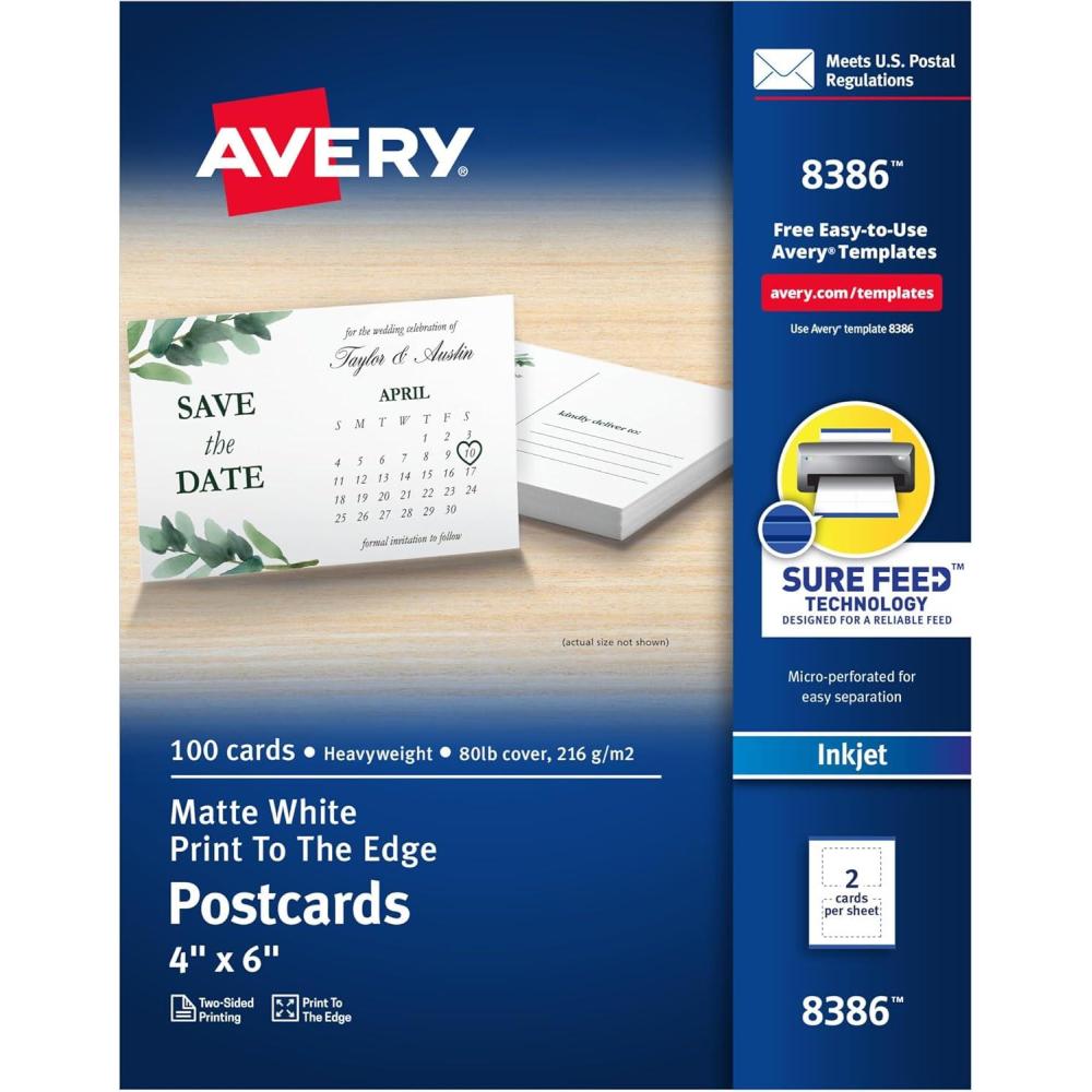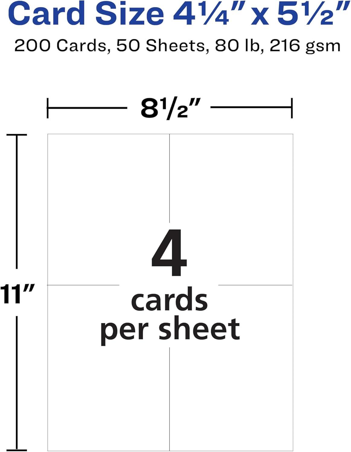 Avery Printable Postcards, 4.25" x 5.5", Matte White, 200 Blank Postcards for Inkjet Printers (8387)(Matte White)