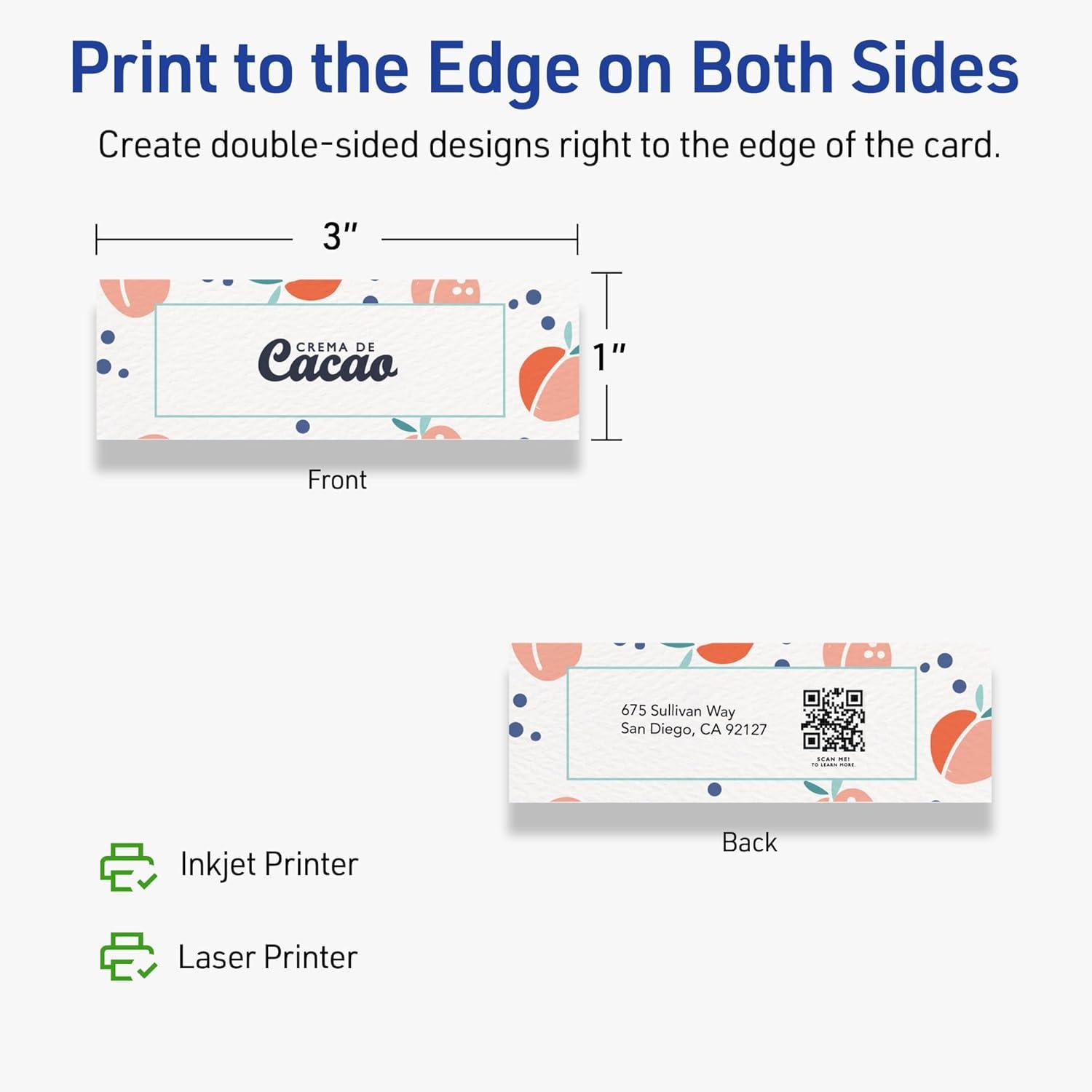Elevate every design: Create next-level thank you cards, RSVP cards, coupon cards, and more with full-color printing on both sides that extend to the edges of each blank business card