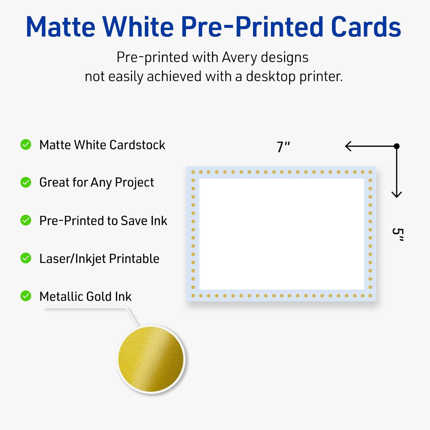 Avery Printable Rectangle Invitation Cards, Gold Multi-Lined Border, 5" x 7", Matte White, Laser/Inkjet, 20ct, Great for Invitation Cards(Blue Border with Gold Dots)