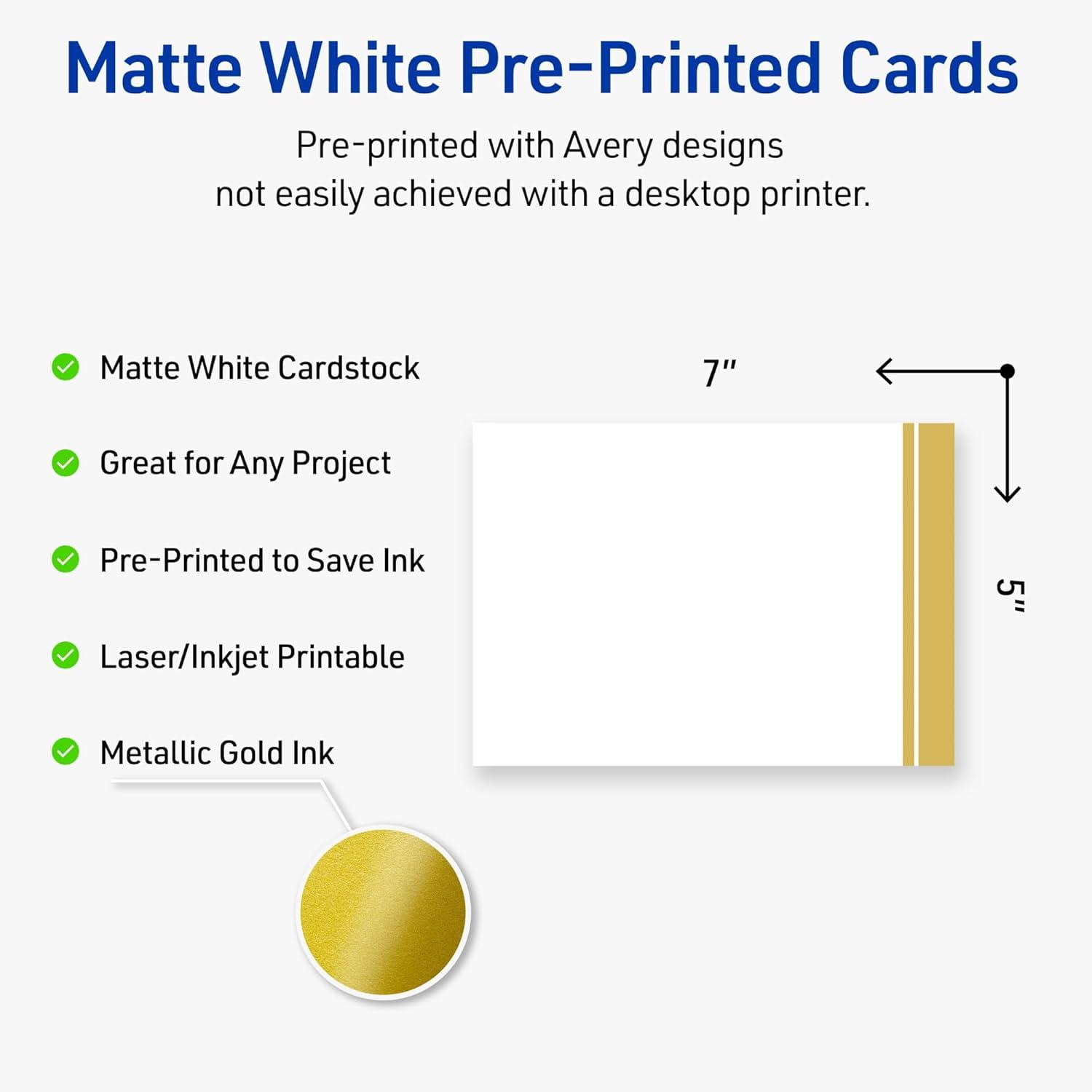 Avery Printable Rectangle Invitation Cards, Gold Multi-Lined Border, 5" x 7", Matte White, Laser/Inkjet, 20ct, Great for Invitation Cards(Double Dipped Gold Edge)