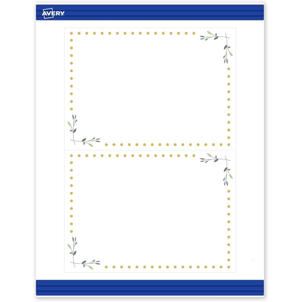imageAvery Printable Rectangle Invitation Cards Gold MultiLined Border 5quot x 7quot Matte White LaserInkjet 20ct Great for Invitation CardsGreen Florals with Gold Dots