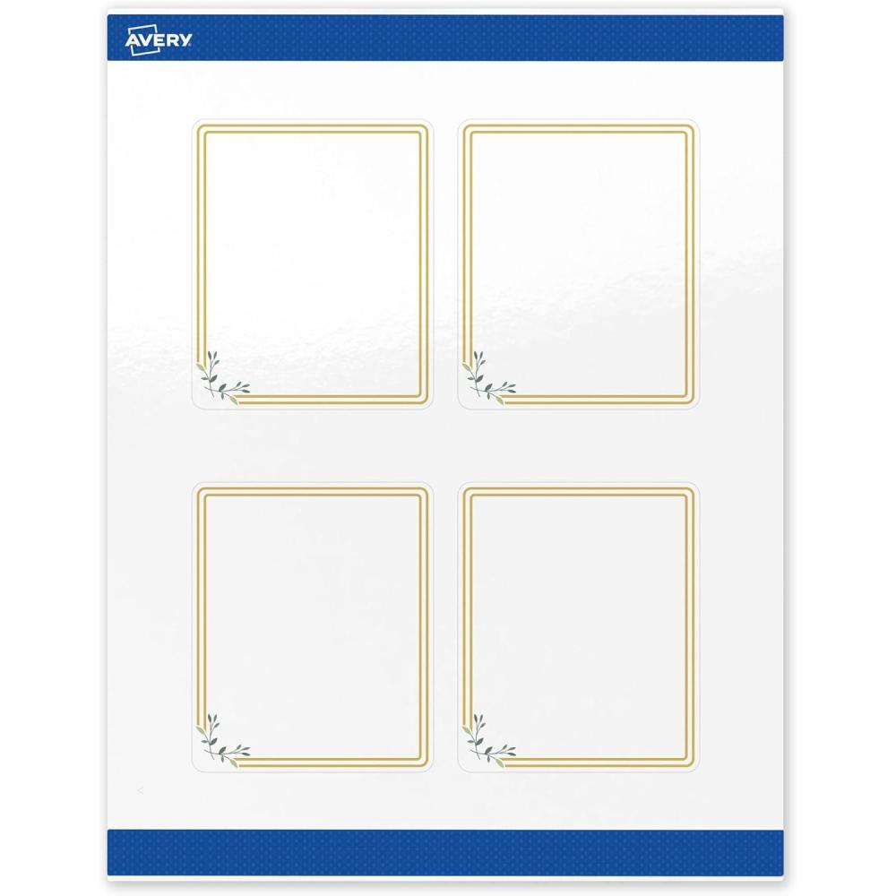 Avery Printable Rectangle Labels, Gold Dots, Blue Border, 4" x 3-1/3", Glossy White Rectangle Labels, Permanent, Laser/Inkjet, 40ct, Great for Product Merchandising(Double Gold Border With Florals)