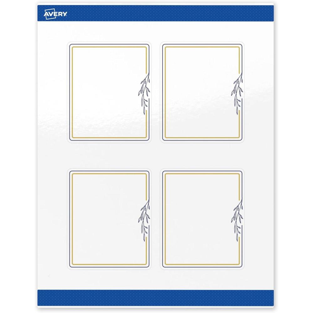 Avery Printable Rectangle Labels, Gold Dots, Blue Border, 4″ x 3-1/3″, Glossy White Rectangle Labels, Permanent, Laser/Inkjet, 40ct, Great for Product Merchandising(Double Gold Border With Florals)