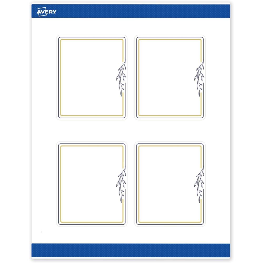 Avery Printable Rectangle Labels, Gold Double Border, Florals, 4″ x 3-1/3″, Matte White Rectangle Labels, Permanent, Laser/Inkjet, 40ct, Great for Product Merchandising(Gold & Navy Border With Florals)