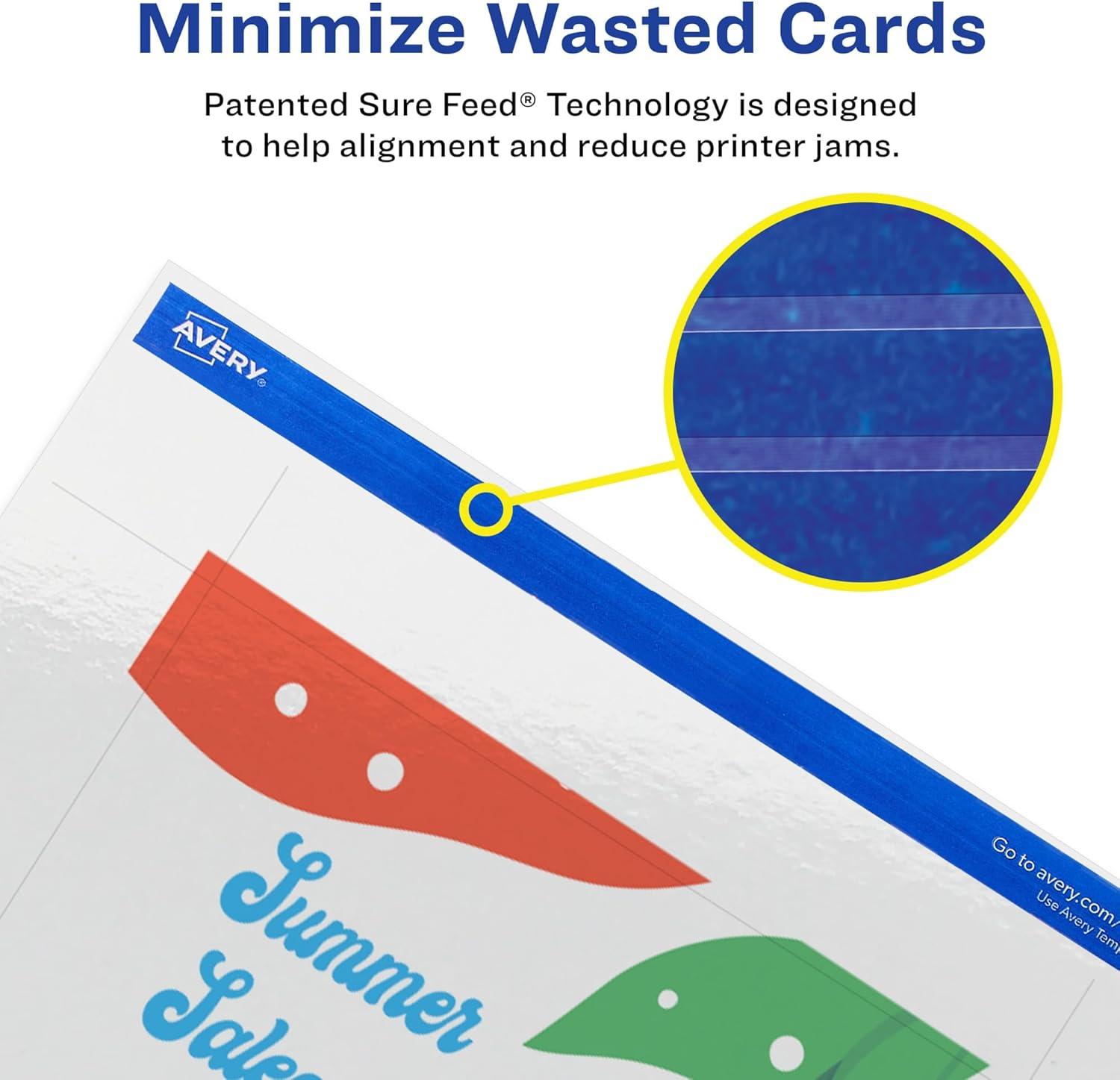 Avery cards with patented Sure Feed technology provide a more reliable feed through your printer, reducing misalignments and jams