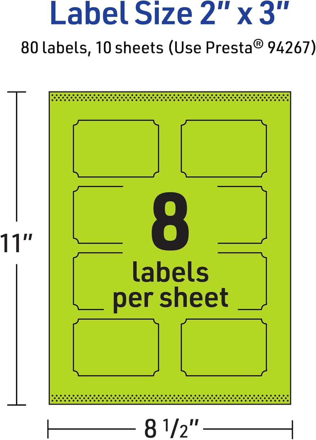 Design your own high-visibility labels with vibrant, bright colors with Avery Bright Green Rectangle Scalloped 2″ x 3″ Labels. Created with brilliantly eye-catching bright green label material, these vivid labels will immediately grab people's attention so that you can easily make your own mailing labels, candle jar labels, soap labels, and more! The bright color is perfect whether you need to create warnings, organize inventory, or make sure your product labels stand out on a shelf. Colored labels also help you reduce printing costs by printing with black ink instead of printing color ink on white paper. Compatible with both laser and inkjet printers, these labels make it easy to design professional labels with your own home or office printer. The print-to-the-edge layout allows you to create full-bleed artwork that allows the bright label color to peek through gaps in your design and it also lets you add in borders that fill the edges without any empty spaces. Easily customize labels for food containers, product labels, body scrub labels, and more with your own logos, art, symbols, and messaging by using the templates and designs in Avery Design & Print on the Avery site.