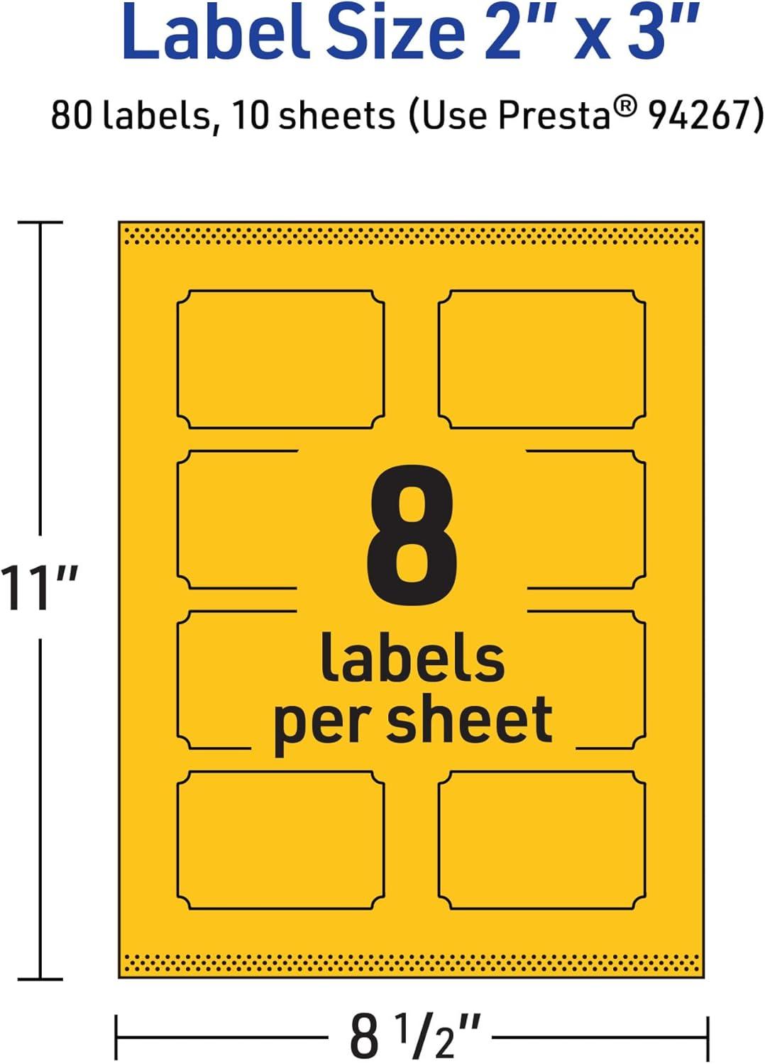 Avery Printable Rectangle Scalloped Labels, Sure Feed Technology, 2″ x 3″, Bright Yellow Labels, Print-to-The-Edge, Laser/Inkjet Printable, 80 Total, Great for Mailing and Candles(80 labels)