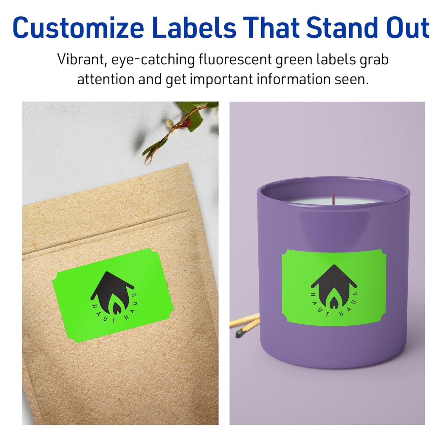 Avery Printable Rectangle Scalloped Labels, Sure Feed Technology, 2″ x 3″, Neon Green Labels, Print-to-The-Edge, Laser/Inkjet Printable, 80 Total, Great for Mailing and Candles(320 labels)