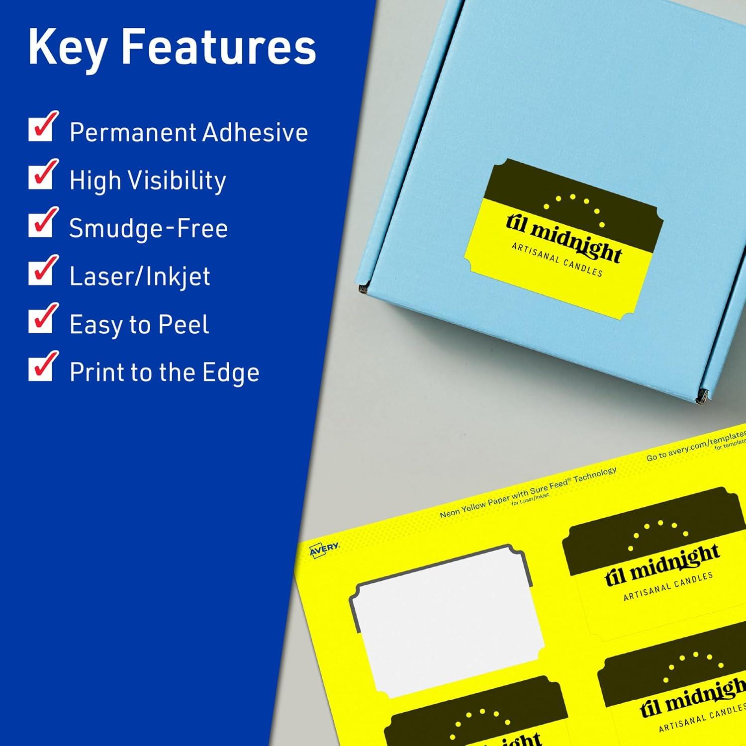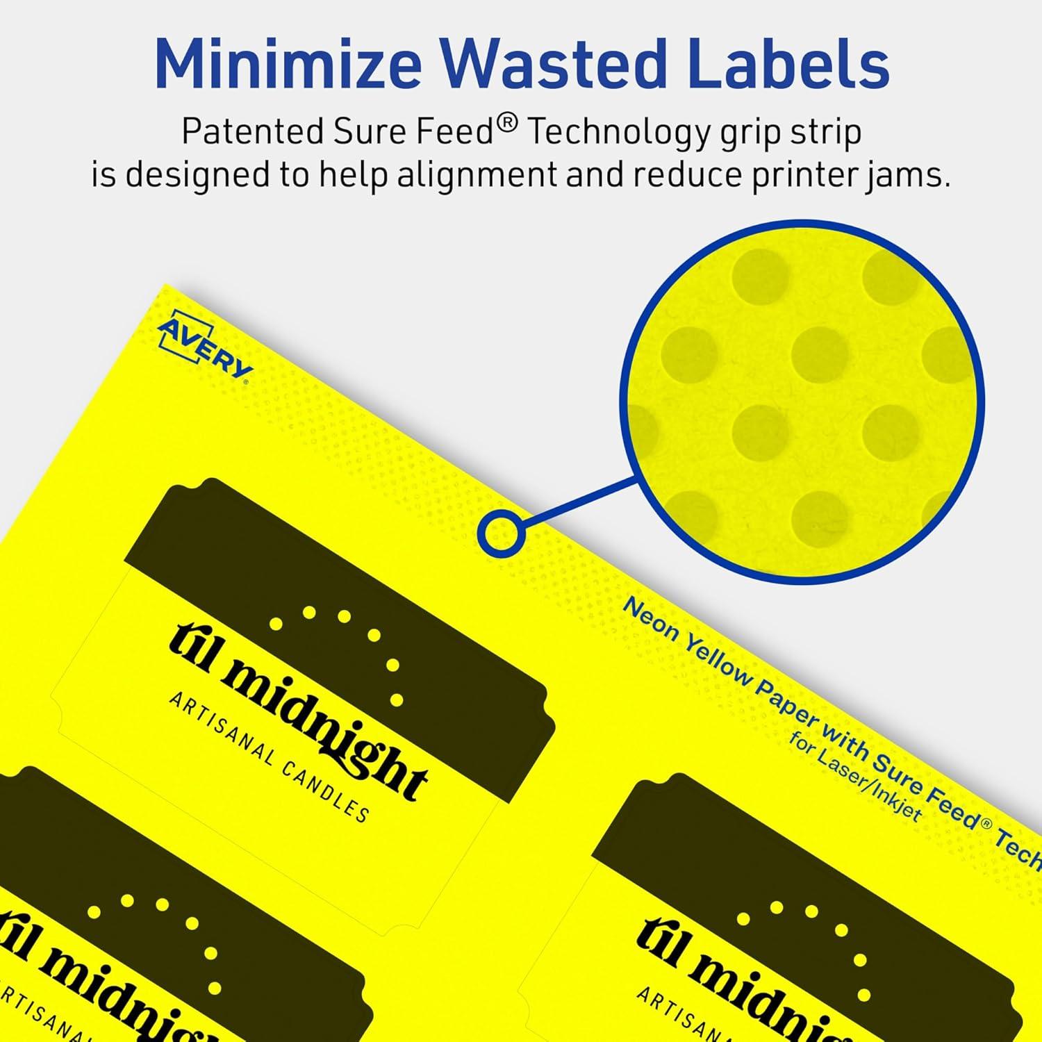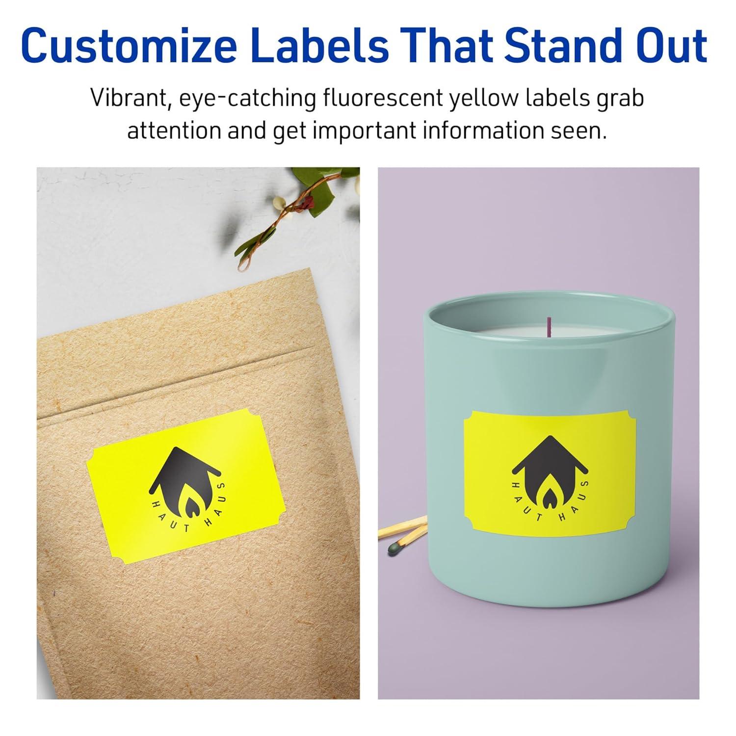 Avery Printable Rectangle Scalloped Labels, Sure Feed Technology, 2″ x 3″, Neon Yellow Labels, Print-to-The-Edge, Laser/Inkjet Printable, 80 Total, Great for Mailing and Candles(320 labels)
