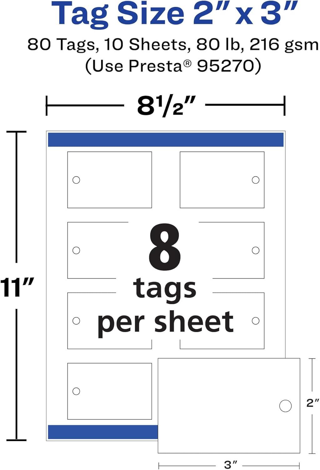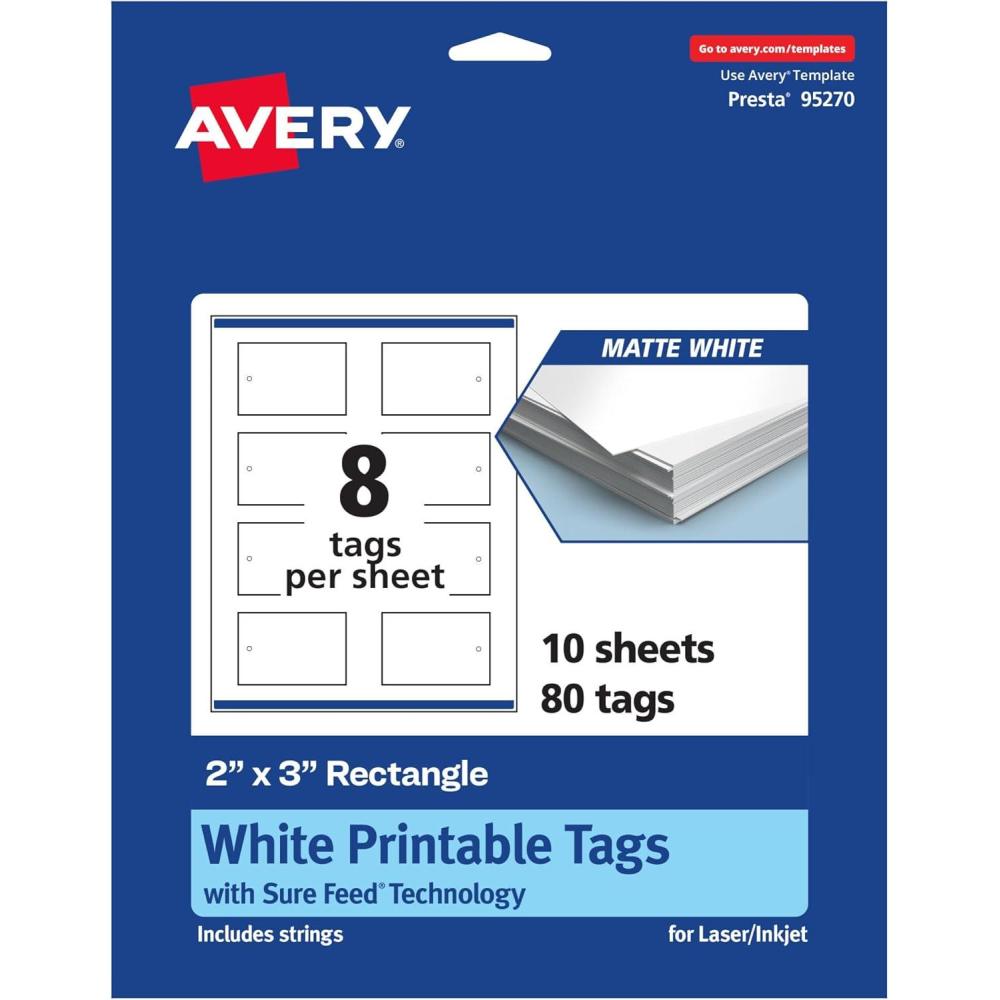 Avery Printable Rectangle Tags, Strings, Sure Feed Technology, 2" x 3", Matte White Cardstock, Print-to-the-Edge, Laser/Inkjet Tags, 200 Total(80 tags)