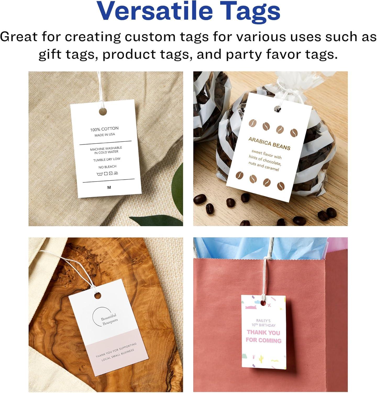 Avery Printable Rectangle Tags, Strings, Sure Feed Technology, 2″ x 3″, Matte White Cardstock, Print-to-the-Edge, Laser/Inkjet Tags, 200 Total(80 tags)
