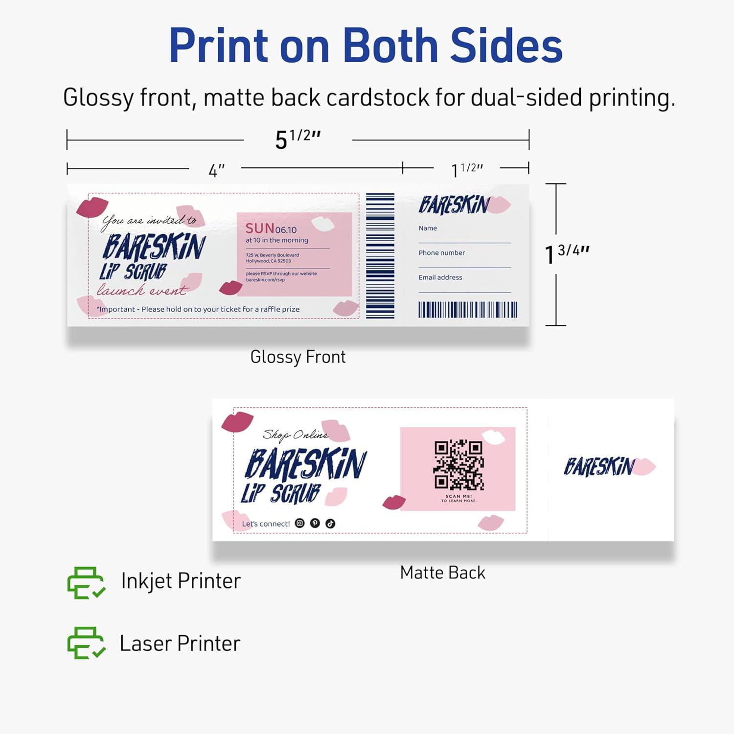Avery Printable Rectangle Tickets, 2-3/4″ x 8-1/2″, Glossy White Cardstock, Laser/Inkjet Printable, 100 Total(40 cards)