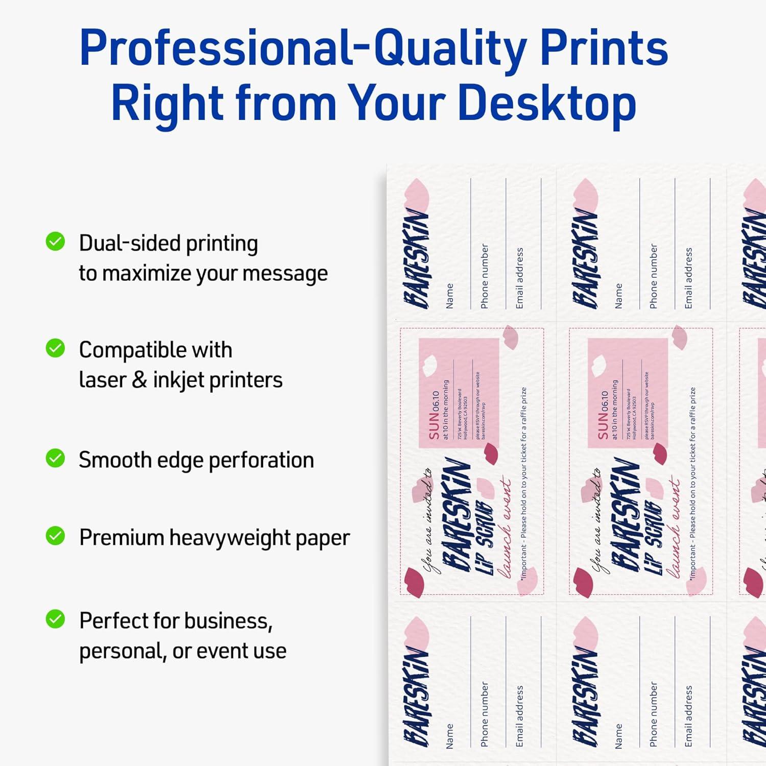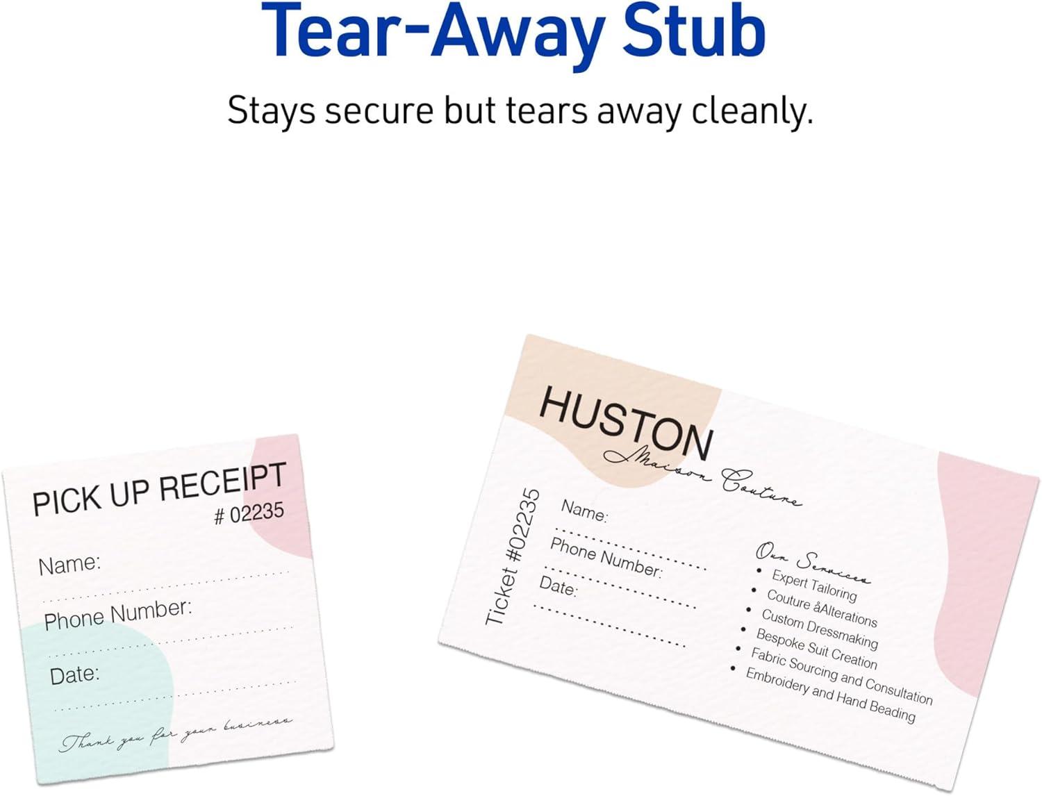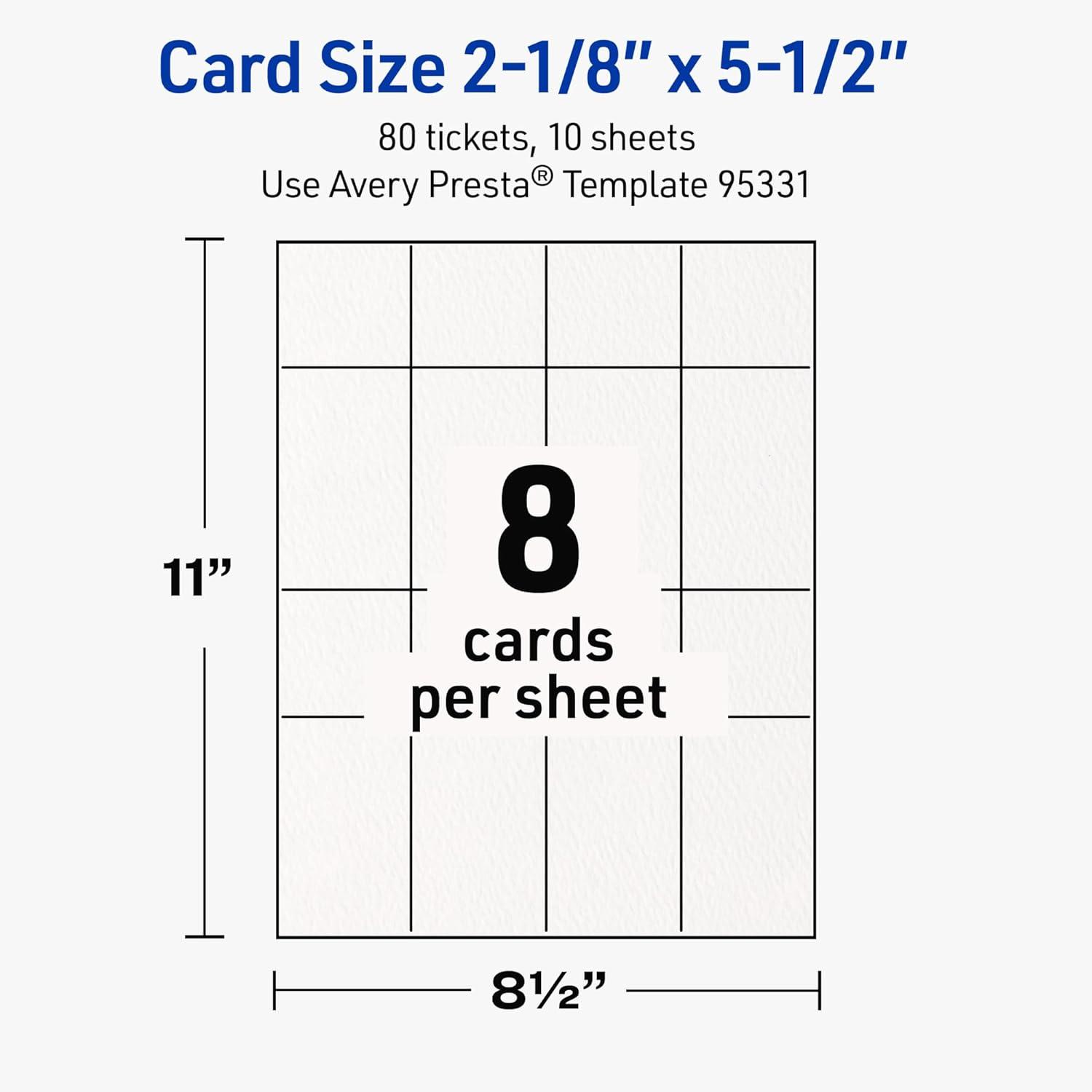 Avery Printable Rectangle Tickets, 2-1/8" x 5.5", Textured Matte White, Laser & Inkjet Compatible, 80 Total, Great for Product Branding, Marketing, and More(80 Cards)