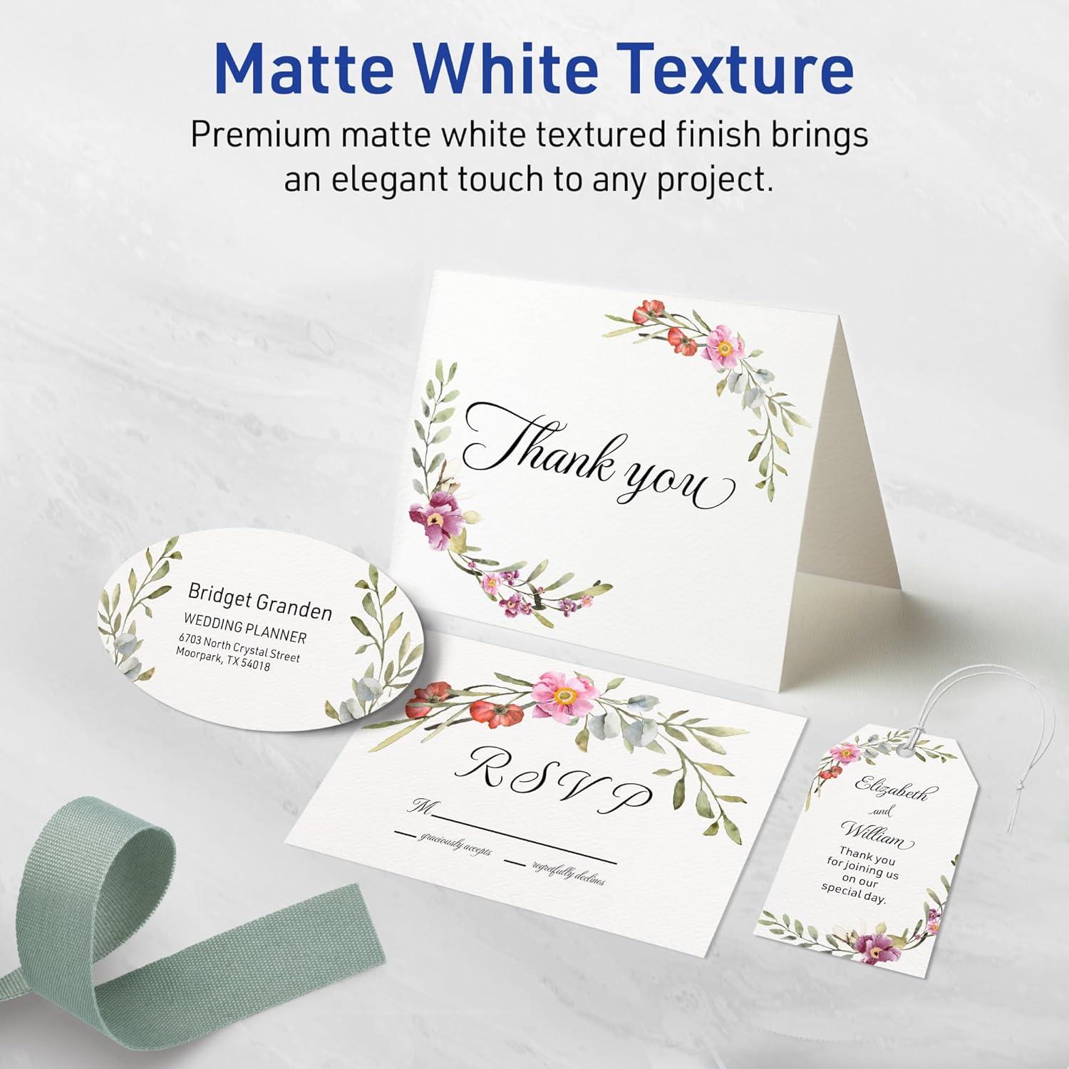 Avery Printable Arched Tent Cards with Sure Feed Technology, 2-1/16″ x 3.75″, Textured Matte White, Print-To-The-Edge Capability, Laser & Inkjet Compatible, 100 Total(200 Cards)