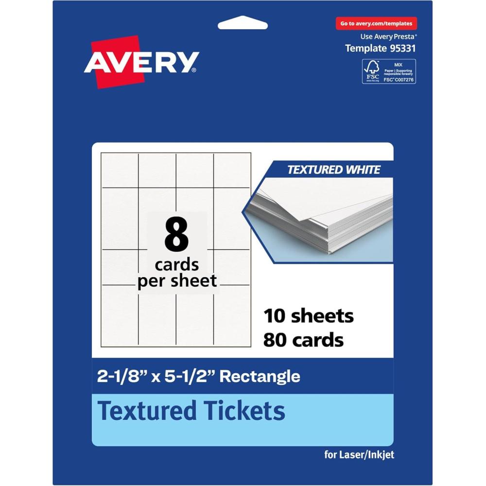 Be the first to review “Avery Printable Rectangle Tickets, 2-1/8″ x 5.5″, Textured Matte White, Laser & Inkjet Compatible, 80 Total, Great for Product Branding, Marketing, and More(80 Cards)”