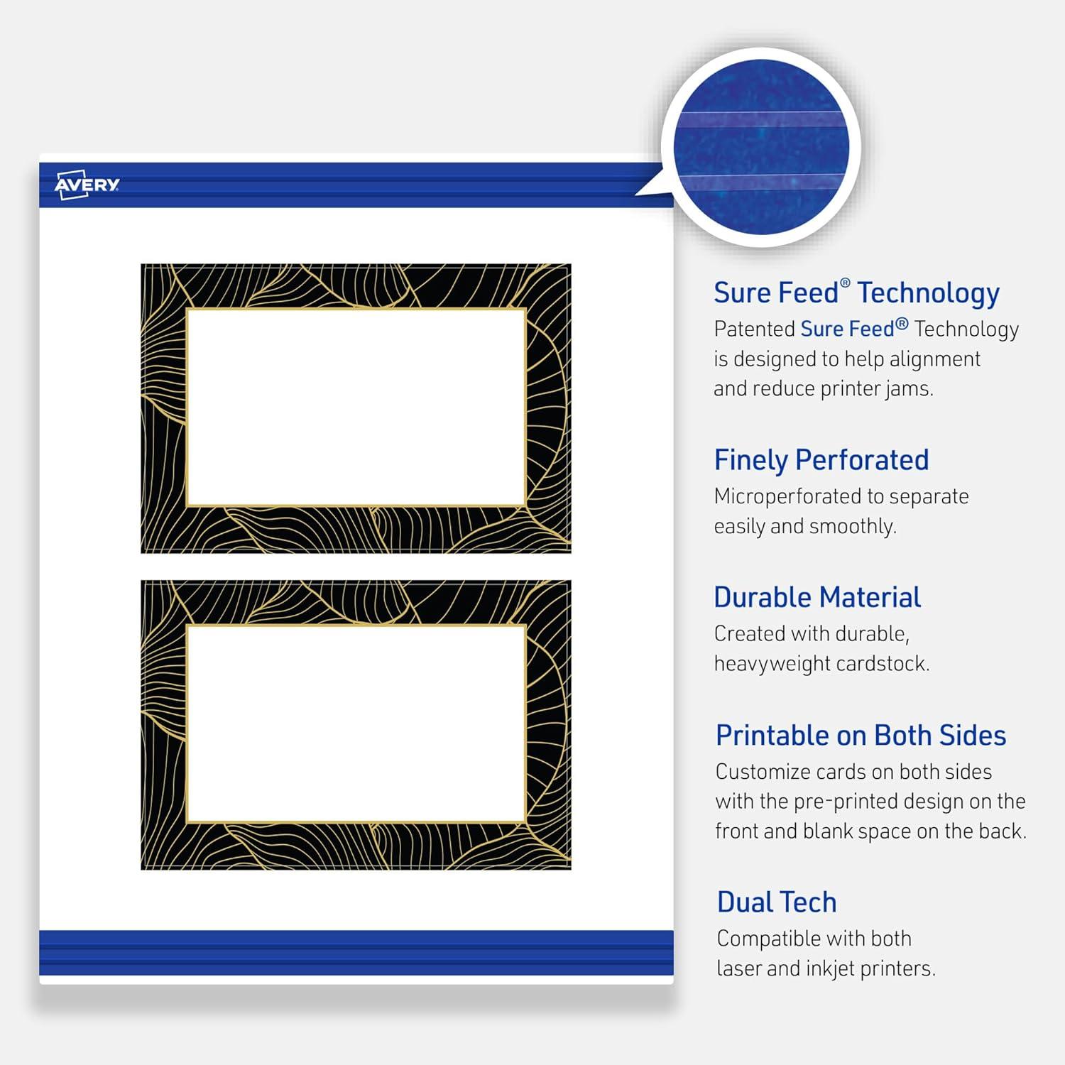 Avery cards with patented Sure Feed technology provide a more reliable feed through your printer, reducing misalignments and jams