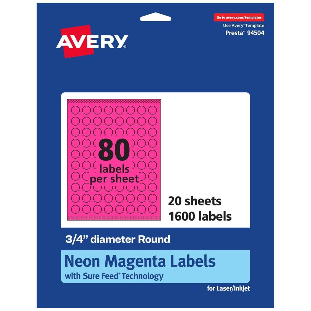 imageAvery Printable Round Labels Sure Feed Technology 34quot Diameter Neon Magenta Labels PrinttoTheEdge LaserInkjet 3200 Total Great for Price Stickers and Mailing Seals1 600 labels
