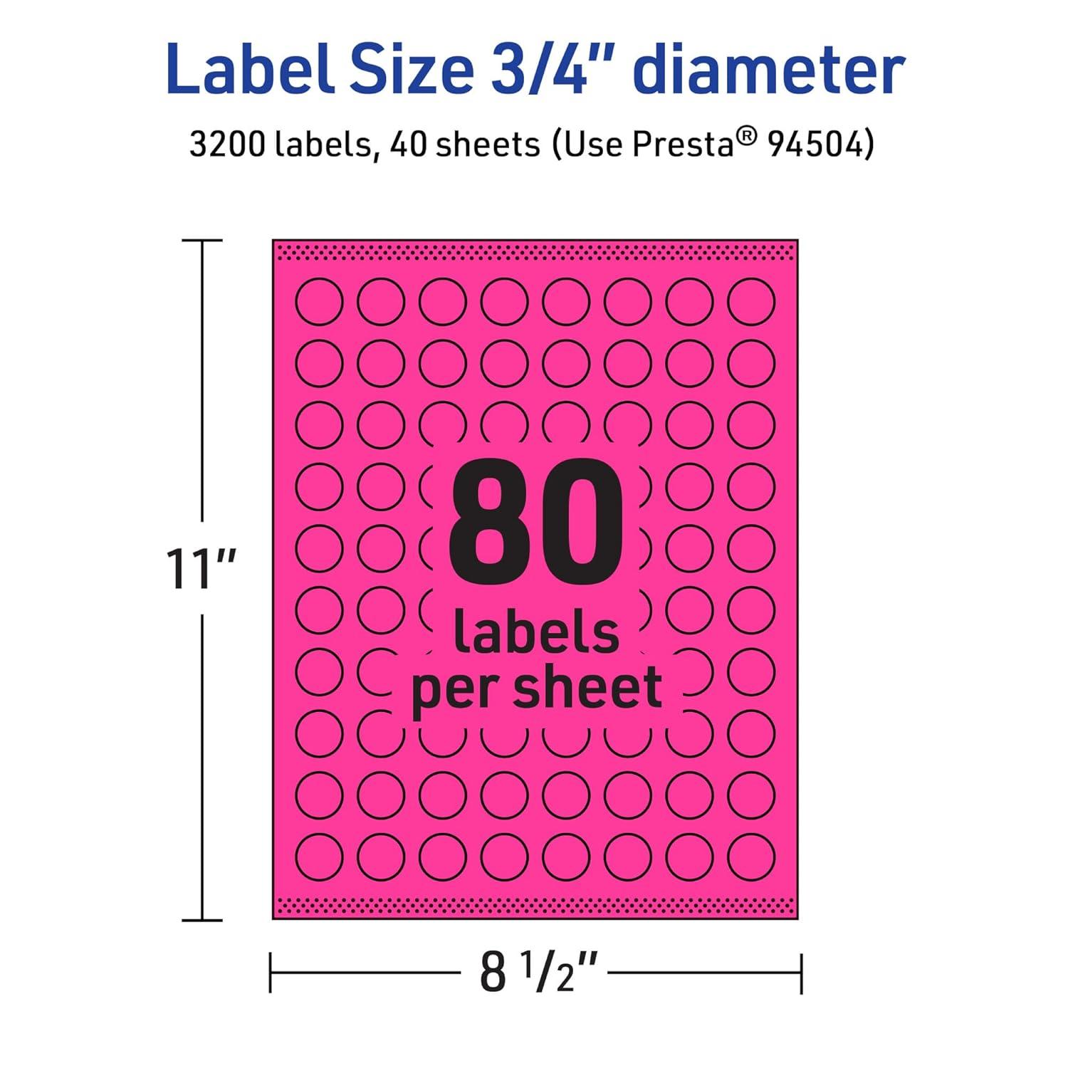 Avery Printable Round Labels, Sure Feed Technology, 3/4" Diameter, Neon Magenta Labels, Print-to-The-Edge, Laser/Inkjet, 3,200 Total, Great for Price Stickers and Mailing Seals(3 200 labels)