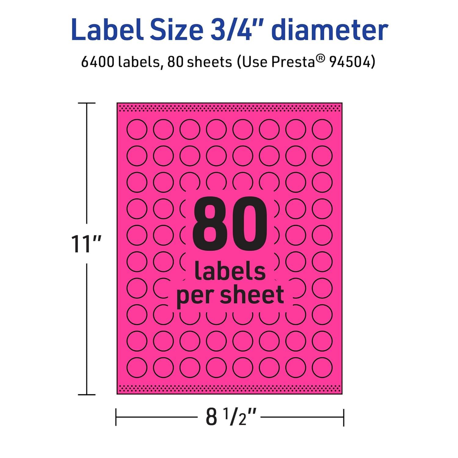 Avery Printable Round Labels, Sure Feed Technology, 3/4″ Diameter, Neon Magenta Labels, Print-to-The-Edge, Laser/Inkjet, 3,200 Total, Great for Price Stickers and Mailing Seals(6 400 labels)