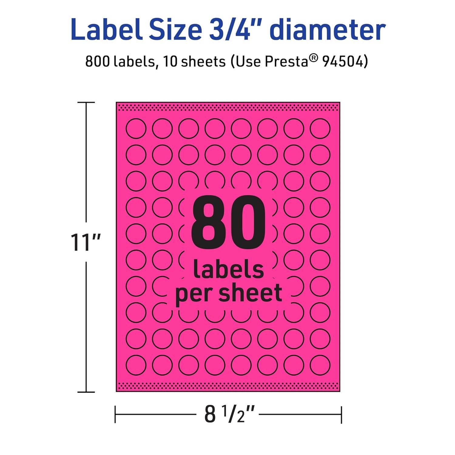 Avery Printable Round Labels, Sure Feed Technology, 3/4" Diameter, Neon Magenta Labels, Print-to-The-Edge, Laser/Inkjet, 3,200 Total, Great for Price Stickers and Mailing Seals(800 labels)