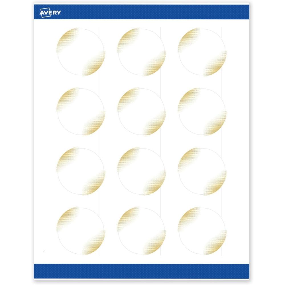 Avery Printable Round Labels, Sure Feed Technology, Gold Dots Edge Design, 2″ Diameter, Matte White Permanent Labels, Laser/Inkjet, 120 Total, Great for Product Merchandising(Gold Blush)