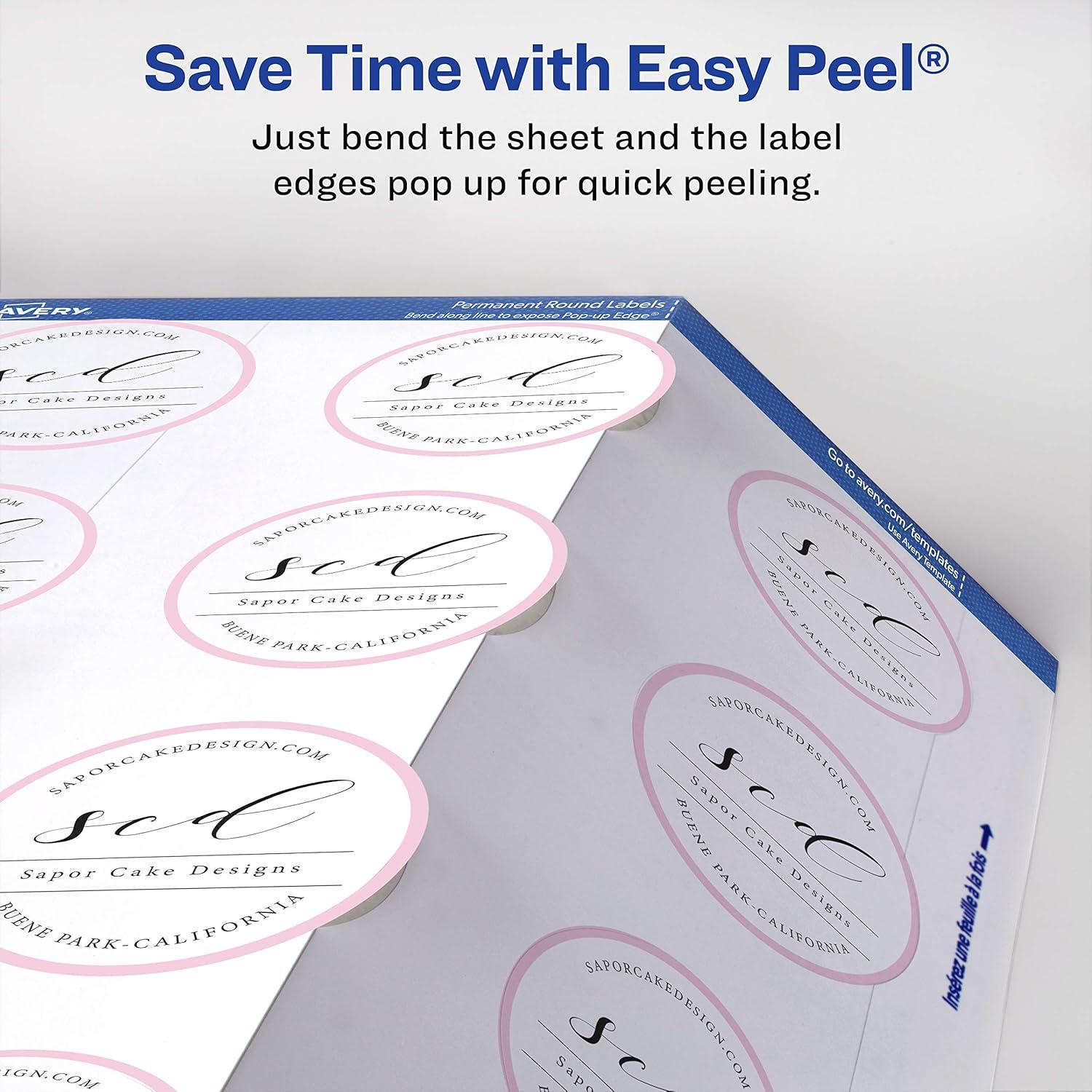 Save time with our Easy Peel with Pop-up Edge; simply bend the sheet back to pop up the edges of the round sticker labels for quick and easy peeling